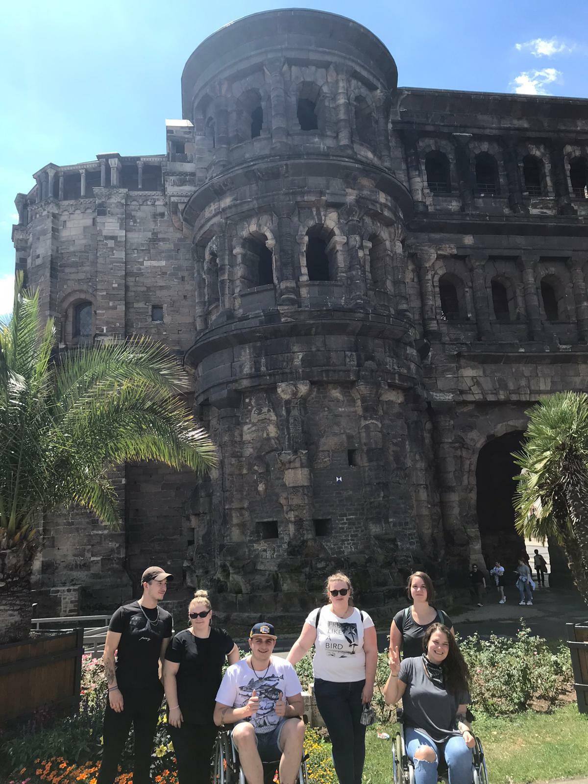 In Zusammenarbeit mit dem Sanitätshaus Kersting in Trier bekamen sie für einen Tag kostenlos Rollstühle gestellt, um die Innenstadt aus einer anderen Perspektive wahrnehmen zu können.
