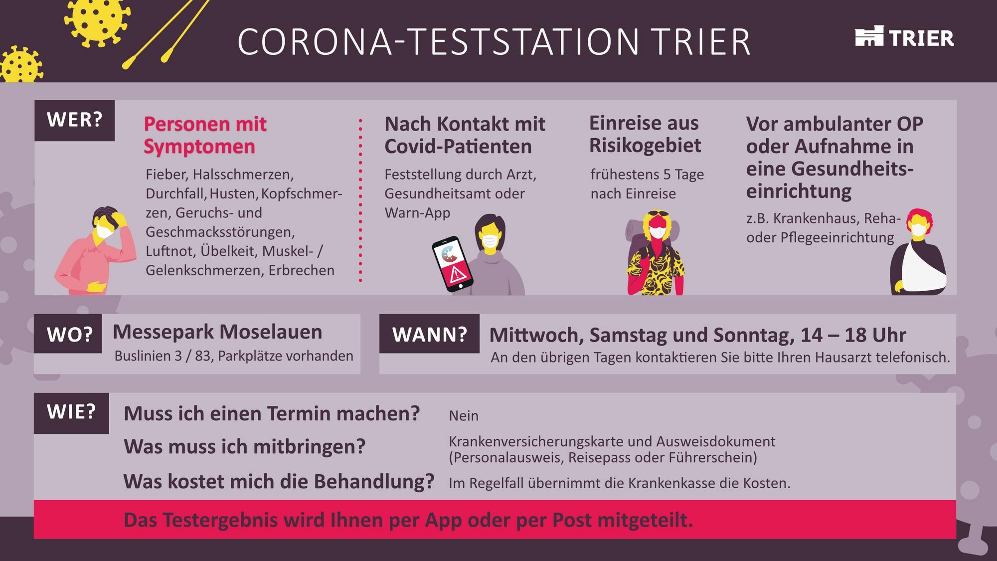 Mit der Corona-Teststation im Messepark sollen die Zeiten abgedeckt werden, in denen Menschen mit Symptomen oder Kontakt zu einem Covid-Patienten, sich nicht bei ihrem Hausarzt testen lassen können. Dementsprechend ist sie mittwochs, samstags und sonntags zwischen 14 und 18 Uhr geöffnet. Ein Termin muss nicht gemacht werden. Wie Oberbürgermeister Wolfram Leibe bei einer Pressekonferenz am Montagmittag im Messepark betonte, sollen die niedergelassenen Ärzte durch das Angebot entlastet werden. Nach jetzigem Stand werden elf Ärzte und Ehrenamtliche mitwirken. Weiteres großes Thema bei der Pressekonferenz war das von Stadt und Landkreis gemeinsam betriebene Impfzentrum, das ab 15. Dezember ebenfalls im Messepark einsatzbereit ist. Wie Leibe erläuterte, habe die Berufsfeuerwehr bereits im Sommer damit begonnen, einen Plan auszuarbeiten, wie Tausende Menschen aus der Stadt geimpft werden können. „Das Konzept ist hervorragend“, lobte Leibe die Planungen. Auch das Land habe auf das Trierer Konzept zurückgegriffen und Städte aus anderen Regionen Deutschlands seien ebenfalls daran interessiert. Olaf Backes, stellvertretender Leiter der Trierer Berufsfeuerwehr, erläuterte den zahlreichen Pressevertretern, dass – vorausgesetzt der Impfstoff steht zur Verfügung – am 15. Dezember mit acht sogenannten „Impfstraßen“ gestartet wird. Bei Bedarf sind bis zu 16 möglich. Somit sind theoretisch bis zu 5000 Impfungen pro Tag möglich. Geöffnet werden könnte das Zentrum im Extremfall im Zwei-Schichtbetrieb zwischen 6 und 22 Uhr, es würden dann rund 80 Menschen im Einsatz sein. Dr. Harald Michels, Leiter des Gesundheitsamts des Kreises Trier-Saarburg, das auch für die Stadt Trier zuständig ist, bezeichnete es als „Segen“, dass es bald einen Impfstoff geben wird. Als erstes würden Ältere, chronisch Kranke, Pflegepersonal und die Mitarbeitenden an den Teststationen geimpft, so Michels. Der Mediziner zeigte sich sehr zuversichtlich, dass der Impfstoff gut verträglich sei und auch keine Langzeitfolgen zu befürchten seien. Logistisch stellt die Lagerung des Impfstoffs insofern eine Herausforderung dar, als dass er im Idealfall bei minus 70 Grad gelagert werden muss. Die Terminvergabe für die Impfungen soll über eine zentrale Stelle mit landesweit einheitlichen Kriterien erfolgen. Dazu wird das Land ein Callcenter als externen Dienstleister beauftragen.