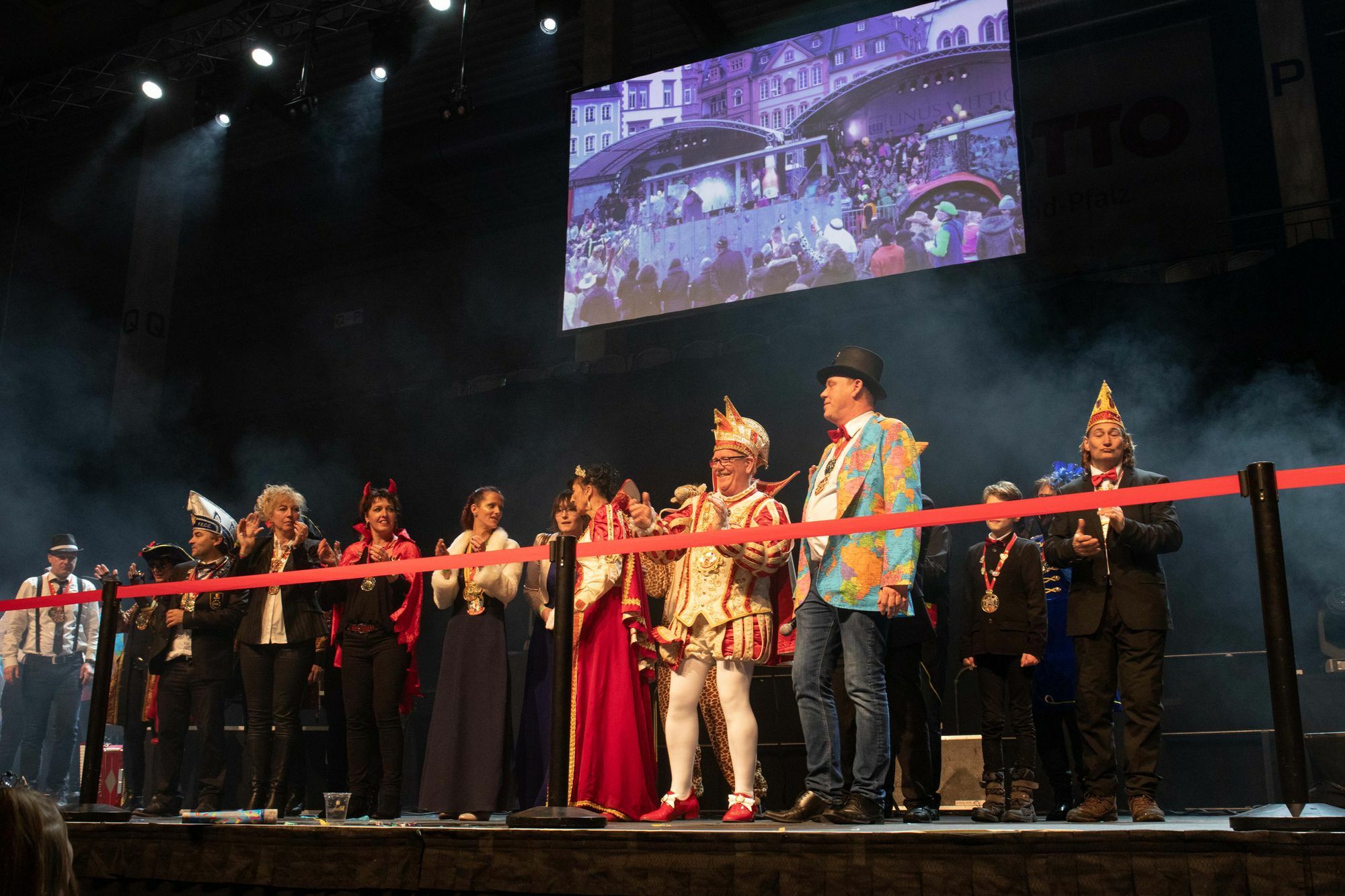 Die Kölschen Jungs begannen pünktlich um 16 Uhr mit ihrem Programm, als nach und nach die ersten Zugteilnehmer eintrafen. Die Kölschen Jungs spielten Cordula Grün und Wolfgang Petry - damit war die Tanzfläche entgültig gefüllt. Ehe Kamelle Kapelle die Halle zum kochen bringen konnte, traf das Prinzenpaar der Stadt Trier, Marie-Claire I. und Prinz Pierrot I., ein. Andreas Peters, Präsident der ATK, bedankte sich bei allen Zugteilnehmern, dass sie trotz des Wetters teilgenommen hatten. Zusammen mit Stefan Feltes vergab er die Pokale für den schönsten Wagen, die schönste Fußgruppe, die originellste Gruppe und einen Sonderpreis. Mit DJ Rent a Sunshine Sonja Storz feierte die Menge im Anschluss bis in die Nacht hinein.