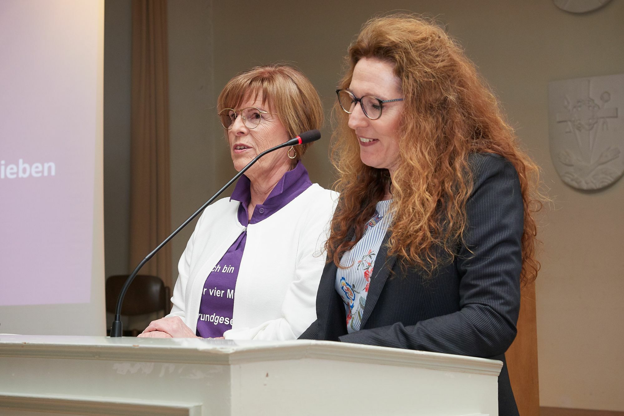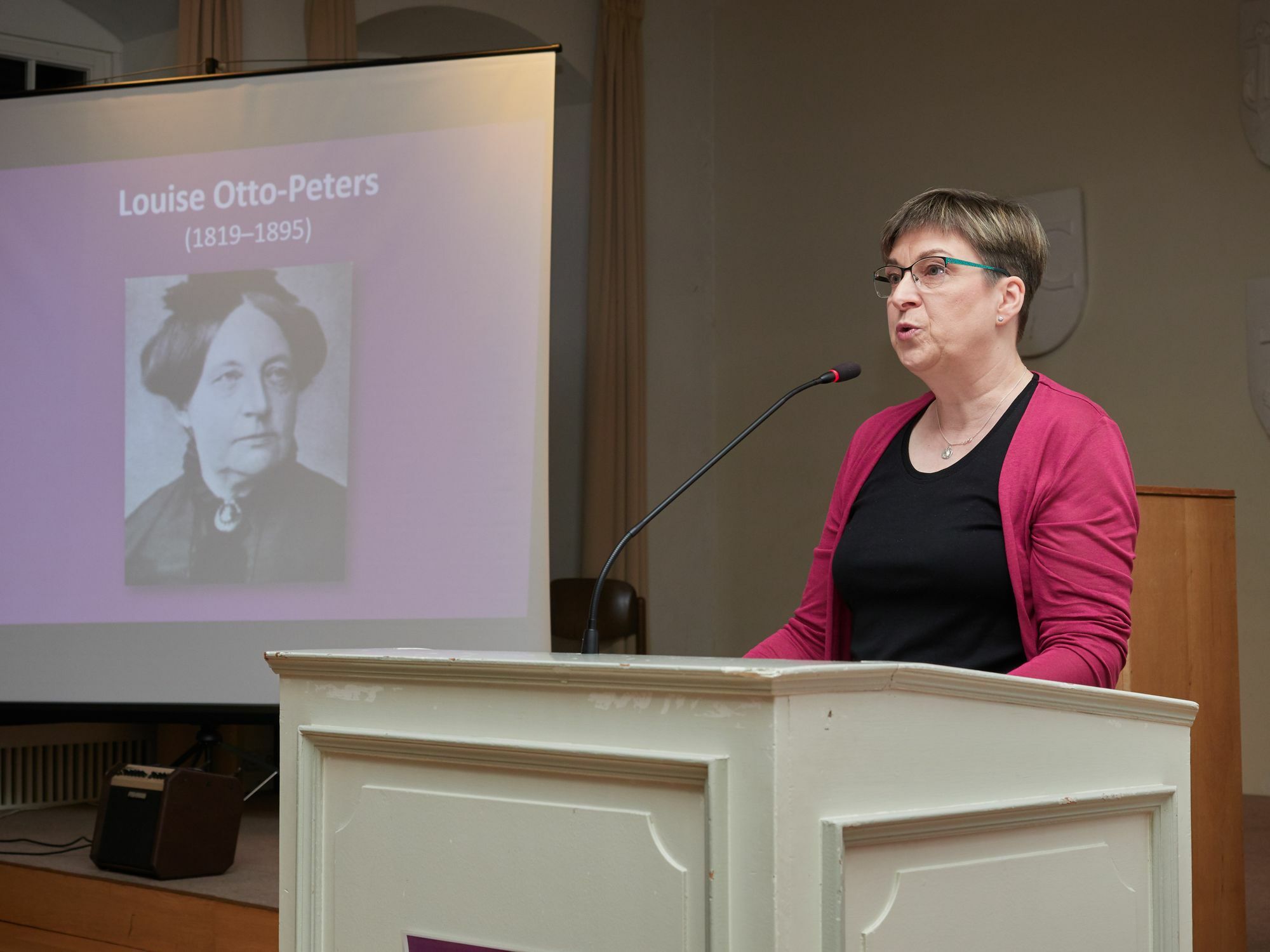 Nach den Ansprachen und einem Impulsvortrag von Claudia Seeling, die einen Einblick in die Geschichte der ersten Frauenbewegung gab, präsentierten Laiendarstellerinnen aus dem Kreis der Organisatorinnen bedeutende Frauen aus der damaligen und auch heutigen Zeit. Sie erzählten von bedeutenden Frauen wie Maria Juchacz, Elisabeth Selbert bis hin zu Angela Merkel - alles Politikerinnen, die für die Durchsetzung der Gleichberechtigung und die politische Beteiligung von Frauen stehen. Abgerundet wurde die Veranstaltung von einer musikalischen Reise in die 70er und 80er Jahre. Sonja Pesie und Partner interpretierten bekannte Sängerinnen wie Aretha Franklin und Helen Redy.