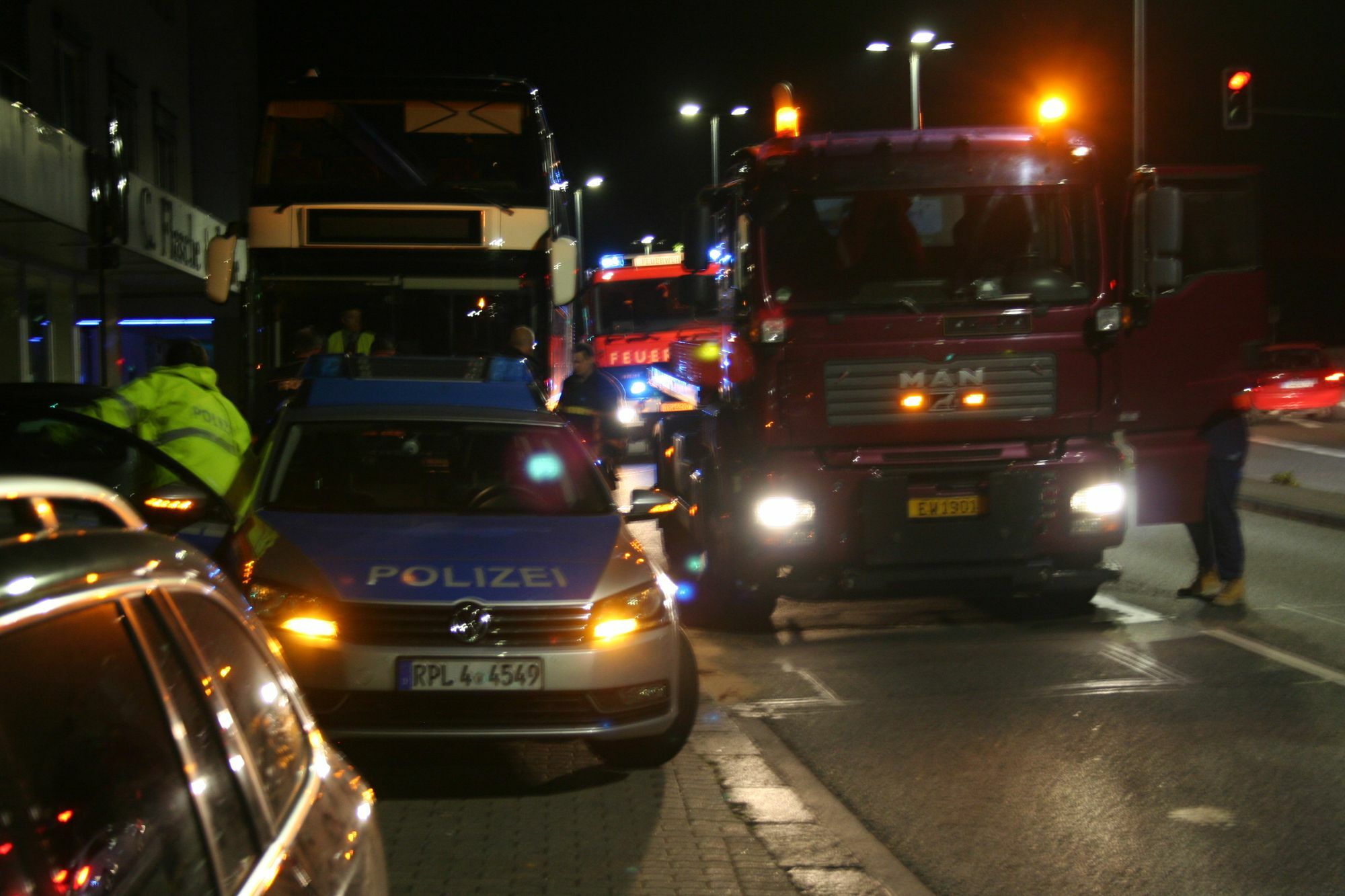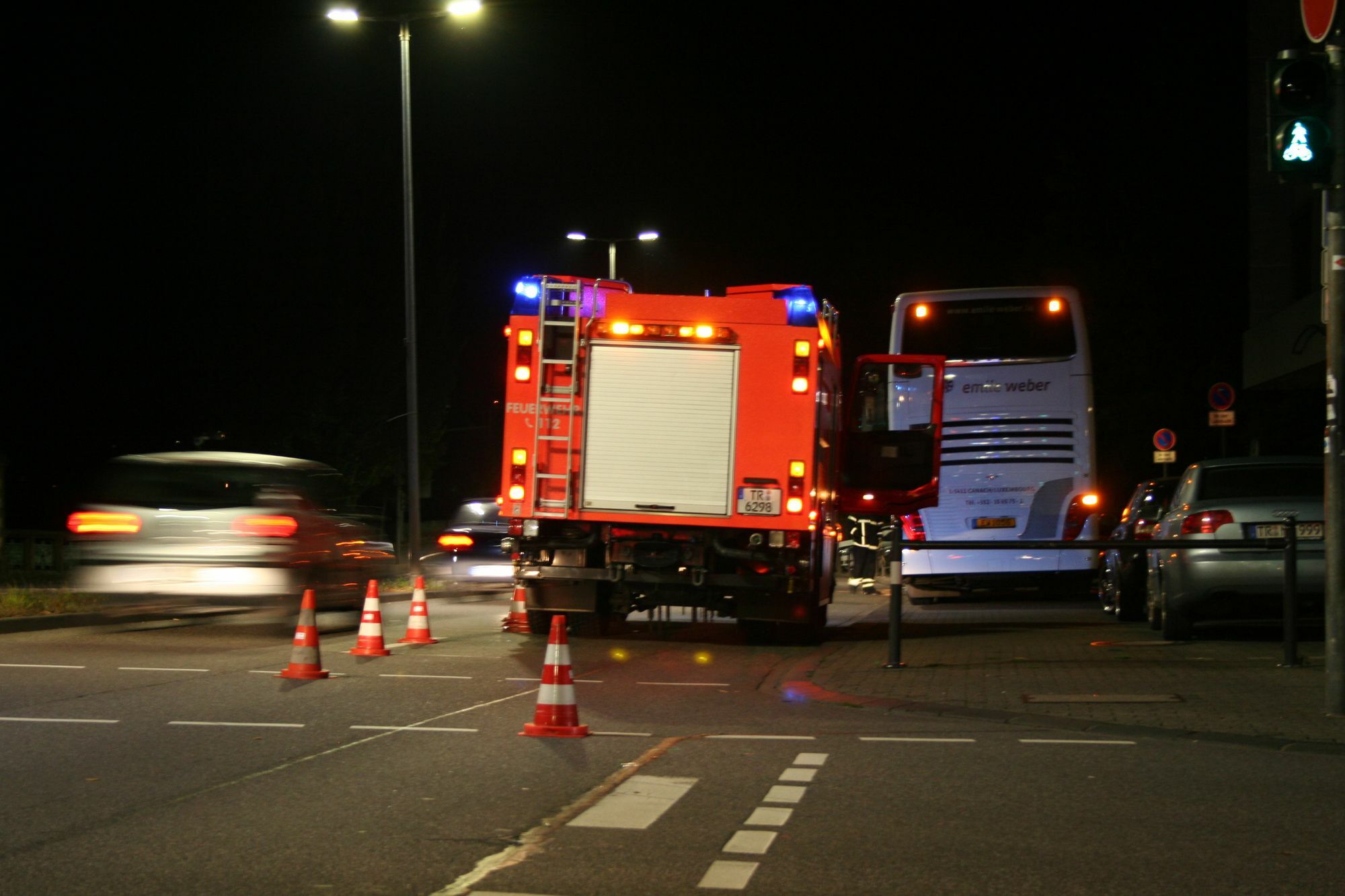 Der Bus fuhr an einer Ampel auf einen dort wartenden Peugeot auf. Dieser wiederum wurde auf das vor ihm stehende Auto geschoben. Verletzt wurde bei dem Unfall niemand. Der entstandene Sachschaden beläuft sich auf circa 5000 Euro. Durch den Unfall liefen bei dem Bus größere Mengen an Betriebsflüssigkeiten aus. Im Bereich der Unfallställe kam es für gut 90 Minuten zu Verkehrsbeeinträchtigungen.