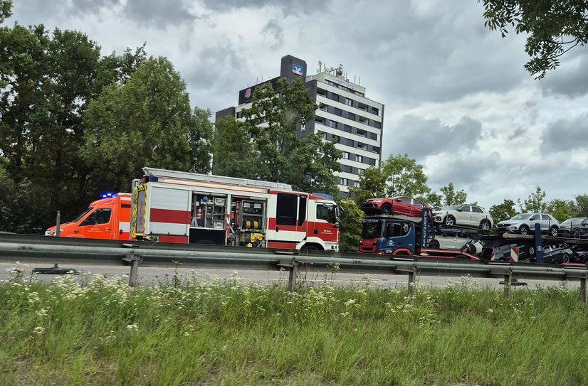 Die Fahrbahn stadteinwärts ist bis auf Weiteres gesperrt. Eine Umleitung ist über den Verteilerkreisel eingerichtet.