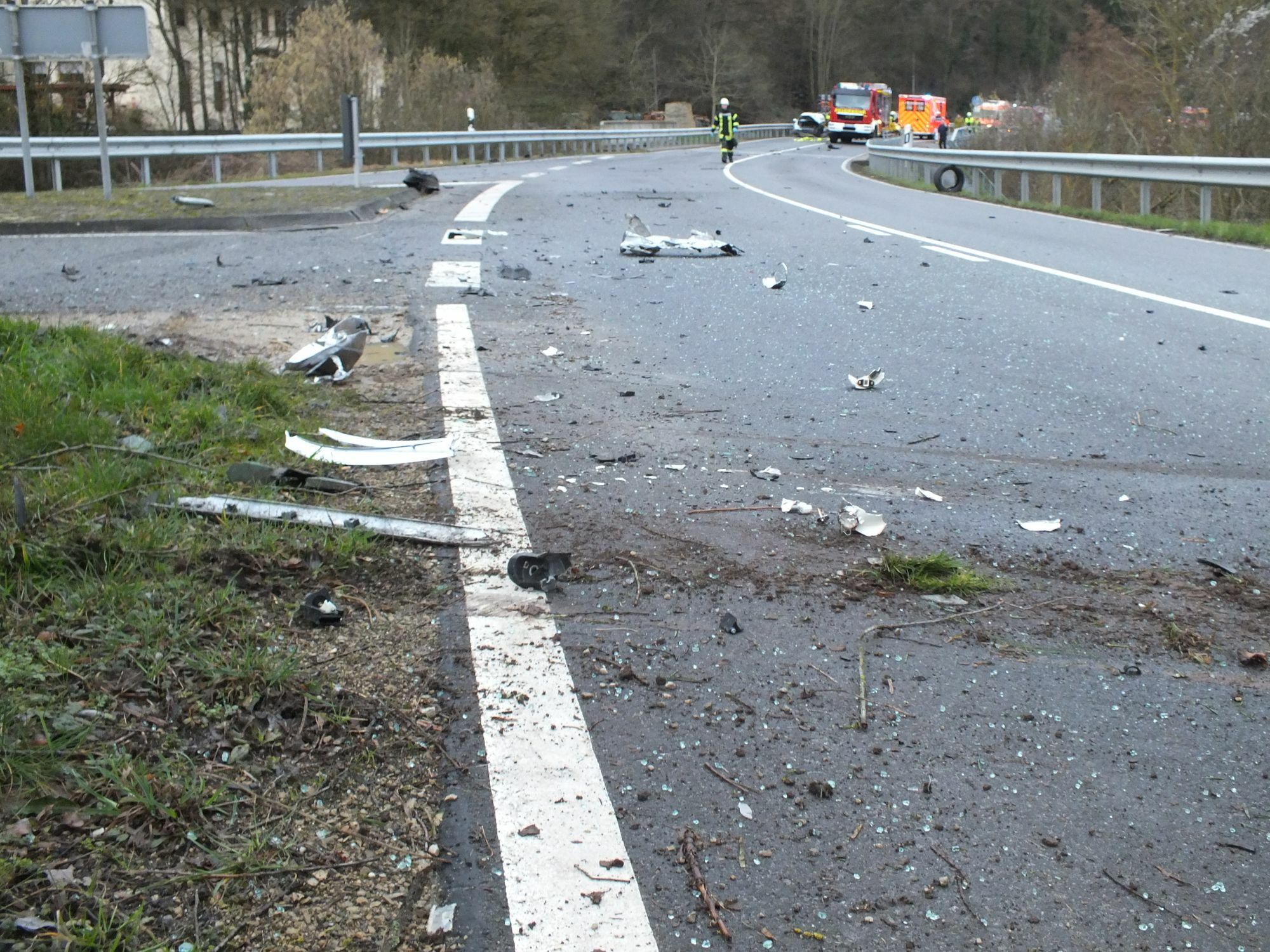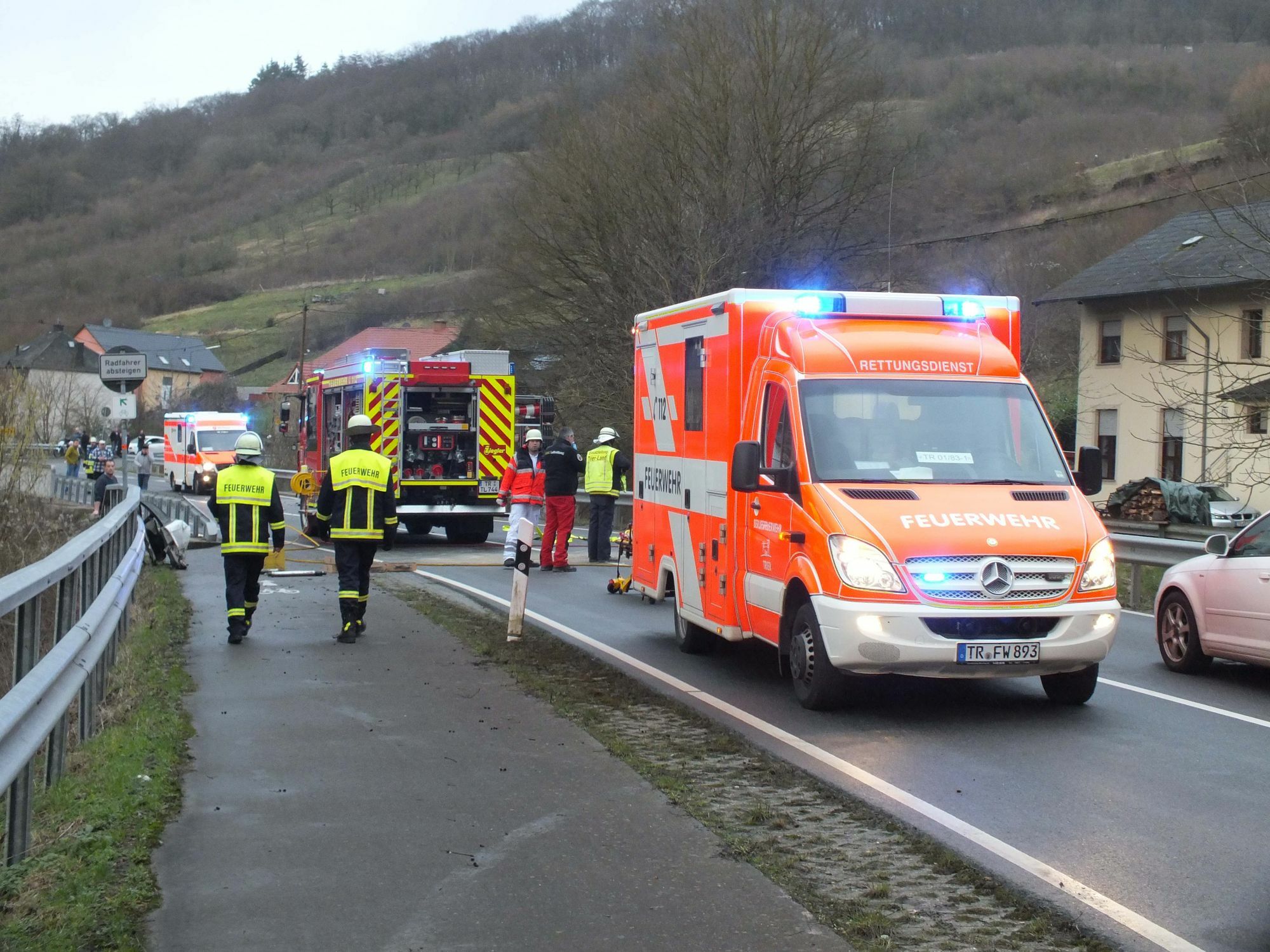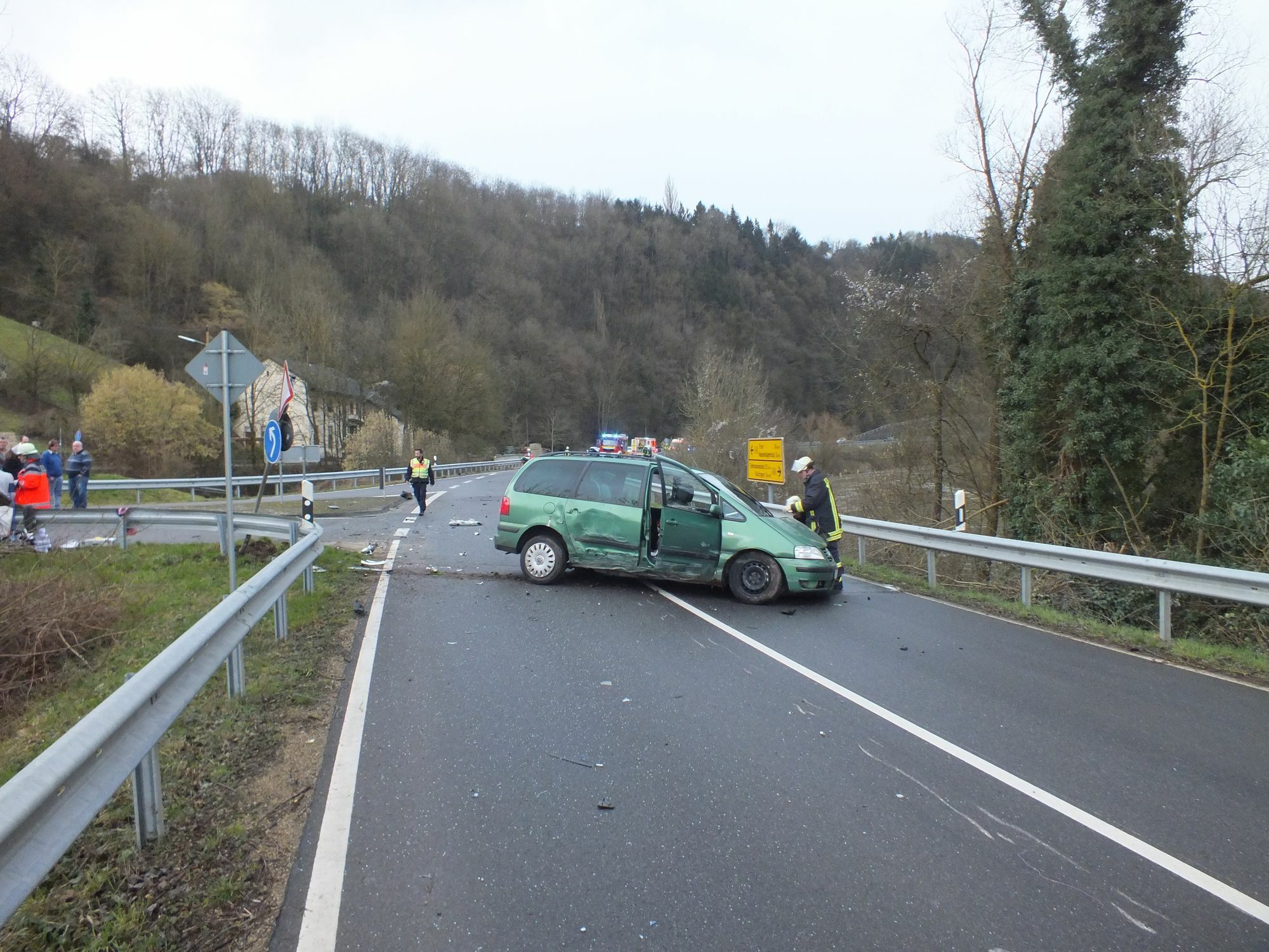 Ein 53-Jähriger geriet wegen überhöhter Geschwindigkeit und Alkoholeinfluss auf Höhe von Mesenich auf die Gegenfahrbahn. Dort rammte er das Auto einer 46-Jährigen. Anschließend stieß er fast frontal mit dem Van einer 40-Jährigen zusammen. Dabei verlor der Mann vollends die Kontrolle über sein Fahrzeug, kam ins Schleudern und stieß gegen die Schutzplanken. Anschließend schleuderte er weiter über die Fahrbahn und kam erst nach weiteren 60 Metern zum Stehen. Der Mann musste von der Feuerwehr schwer verletzt aus dem völlig demonlierten Fahrzeug mit der Rettungsschere befreit werden. "Er hat wohl mehrere Schutzengel dabei gehabt", so Jürgen Cordie, Wehrleiter der VG Trier-Land. Die beiden Frauen wurden bei dem Unfall leicht verletzt. An allen drei Fahrzeugen entstand Totalschaden. Die gesamte Unfallstelle zog sich über 500 Meter. Für die Dauer der Rettung und der Bergung der Fahrzeuge war die Straße für den Verkehr voll gesperrt, es kam zu Rückstaus. Im Einsatz waren die Feuerwehreinsatzzentrale Trier-Land, die Feuerwehren Langsur, Mesenich und Igel sowie die Malteser aus Welchbillig, zwei Rettungswagen der Berufsfeuerwehr Trier, der Christoph 10 mit Notarzt sowie die Polizei Trier. Fotos/Video: Agentur Siko
