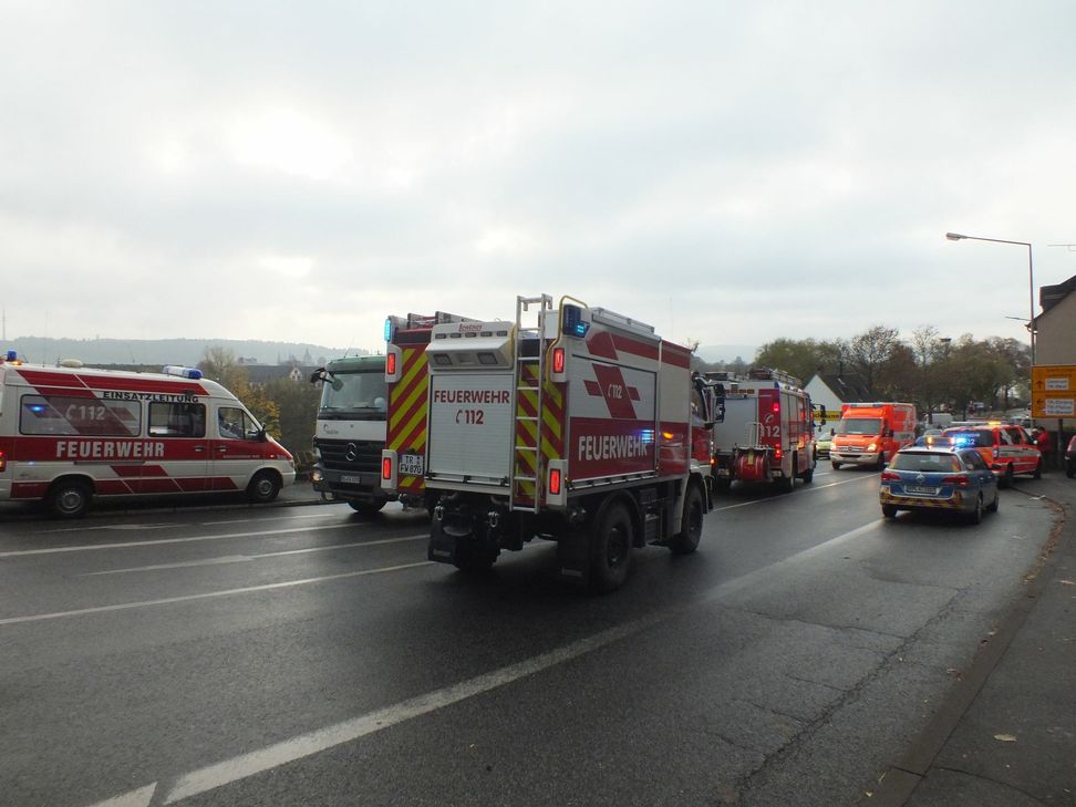 Der Rollerfahrer wurde dabei eingeklemmt und schwer verletzt. Die Feuerwehr befreite ihn. Der Rollerfahrer wurde vom Notarzt versorgt und ins Krankenhaus gebracht. Der Fahrer des Transporters wurde nicht verletzt. Die Feuerwehr streute an der Einsatzstelle ausgelaufene Betreibstoffe ab und sicherte die Unfallstelle. Es kam in alle Richtungen zu Staus. Zur Bergung musste die B51 kurzzeitig voll gesperrt werden. Im Einsatz war die Berufsfeuerwehr Trier, ein Rettungswagen und der Notarzt sowie die Polizei Trier.