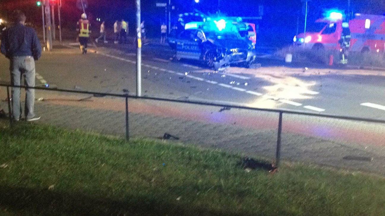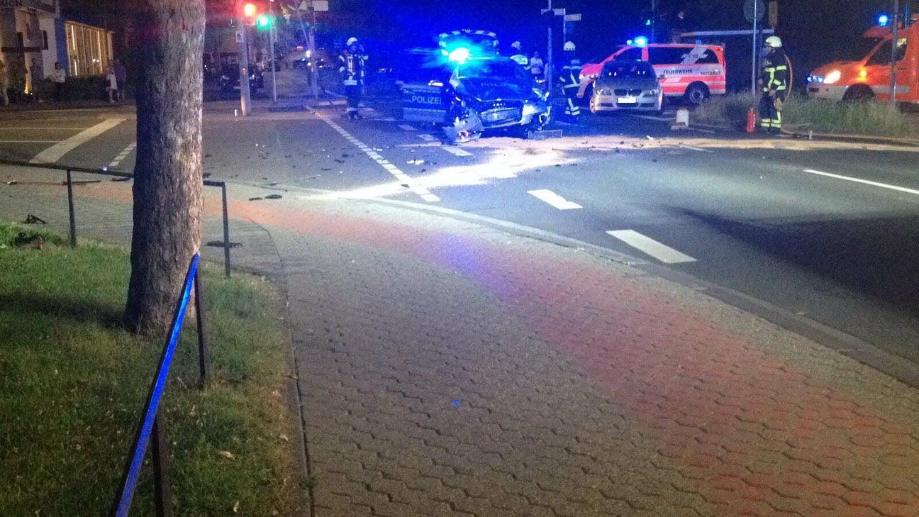 Zu einem schweren Unfall ist es am 30. Juni gegen 23.27 Uhr auf der Kreuzung zwischen Kaiserstraße und Hindenburgstraße gekommen. Ein Polizeifahrzeug und ein PKW waren hier zusammengestoßen. Bei dem Unfall wurden vier Personen zum Teil schwer verletzt.