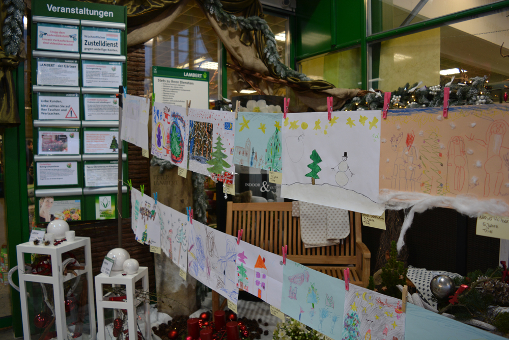 Ab sofort sind zauberhafte Kinderbilder aus unserem großen Malwettbewerb "Weihnachten bei uns zuhaus" im Gartenzentrum Lambert zu sehen.