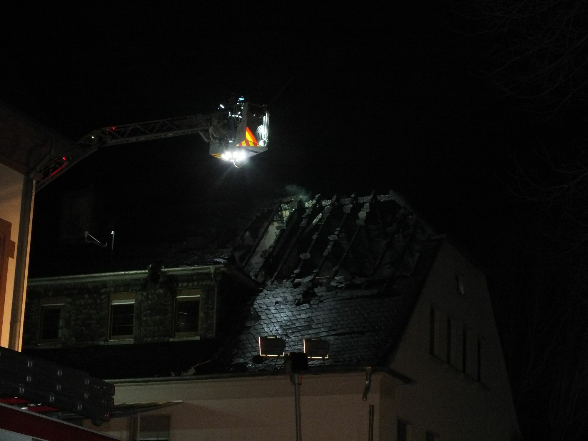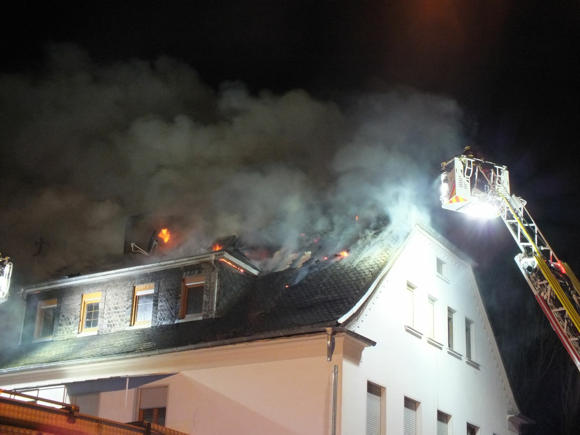 Die Berufsfeuerwehr war um 0.21 Uhr in die Eisenbahnstraße gerufen worden und fand dort den Dachstuhl brennend vor. Neun Bewohner des Hauses konnten sich rechtzeitig mit ihrem Betreuer vor dem Brand ins Freie retten. Da zwei Personen vermisst wurden, drang die Feuerwehr in das Gebäude ein. In einem Zimmer des Dachstuhls fand sie eine der vermissten Personen tot vor. Die zweite vermisste Person wurde schlafend in einem anderen Raum angetroffen und wurde ins Freie gebracht.