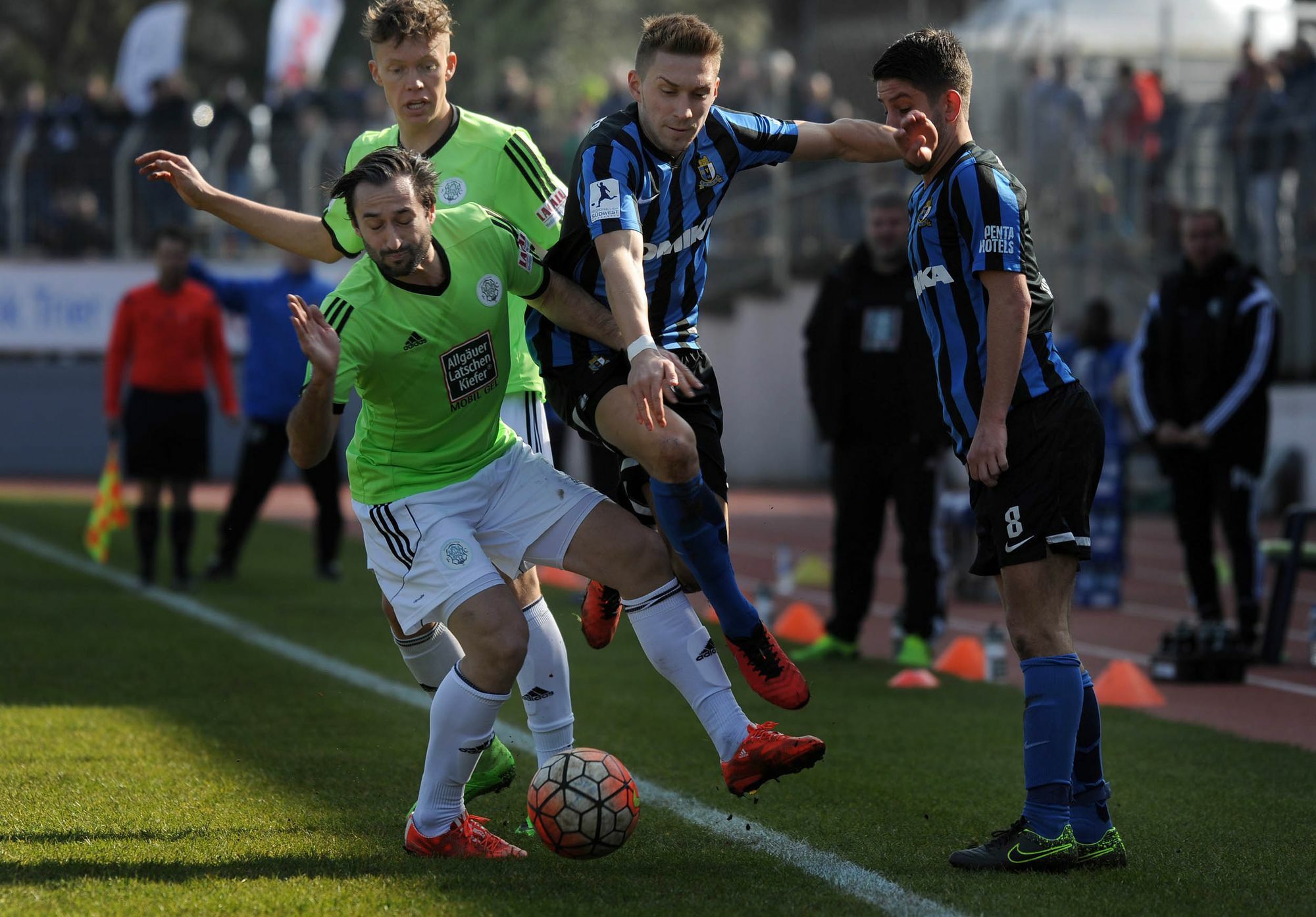 Eintracht Trier: Keilmann - Riedel, Dingels, Buchner, Müller - Gerlinger (67.Garnier), Telch, Spang, Anton (84. Hollmann) - Lienhard - Rugg (89. Hammel) FC 08 Homburg: Buchholz - Eichmann (65.Amri), Fischer, Noll, - Gallego (77. Steimetz), Gaiser, Kilian, Stegerer - Kröner, Cecen - Hesse Tore: 1:0 (54.) und 2:0 (69.) Rugg, 3:0 (93.) Hammel Besondere Vorkommnisse: gelb-rote Karte gegen Chadli Amri (90.+2.) Schiedsrichter: Julius Martenstein (Cölbe/Hessen) Zuschauer: 2456