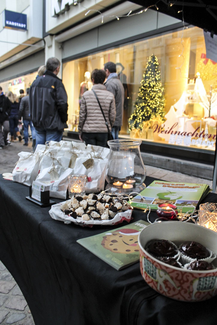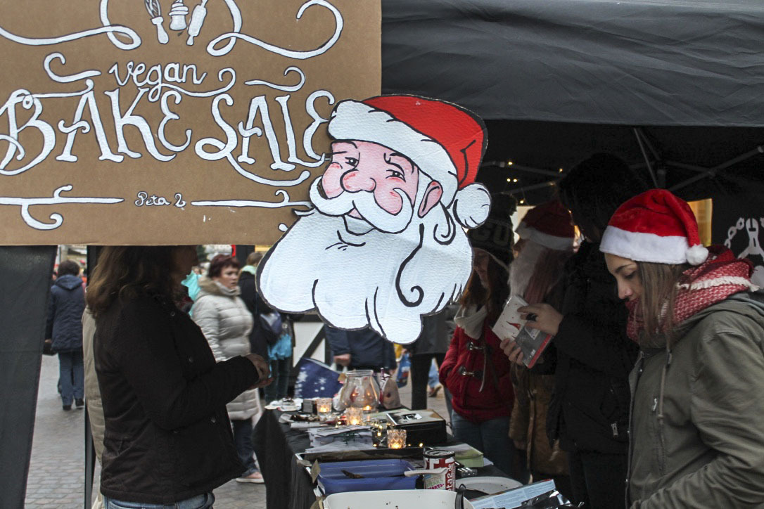 Ein leckeres Essen mit Rouladen, Würstchen oder Wiener Schnitzel gehört für viele an den Festtagen dazu. Die jungen Aktivisten von Peta2 zeigten in der Fußgängerzone, dass es auch an den Feiertagen kein Problem ist auf Fleisch, Milch oder Eier zu verzichten und die klassichen Weihnachtsrezepte in einer veganen Variante zu kochen. Sie verteilten süße Leckerein an die Besucher und brachten ihnen so das vegane Essen näher. "Wir wollten mit dieser Aktion vor allem darauf aufmerksam machen, dass es einfach ist Standardrezepte auch ohne Tierprodukte umzusetzen. Mit ein paar Kniffen ist auch das Ei schnell ersetzt und die Kekse werden so schön, wie Oma sie vielleicht früher schon gebacken hat", so das Peta2 Streatteam. "Jedes Jahr werden besonders viele Tiere in der Vorweihnachtszeit geschlachtet. Das klingt gerade vor dem sogenannten 'Fest der Liebe' ziemlich absurd und traurig", erklärten die Aktivisten ihre Motivation.