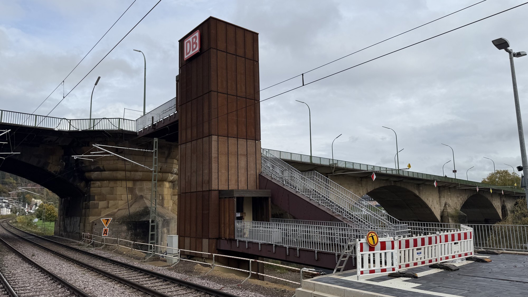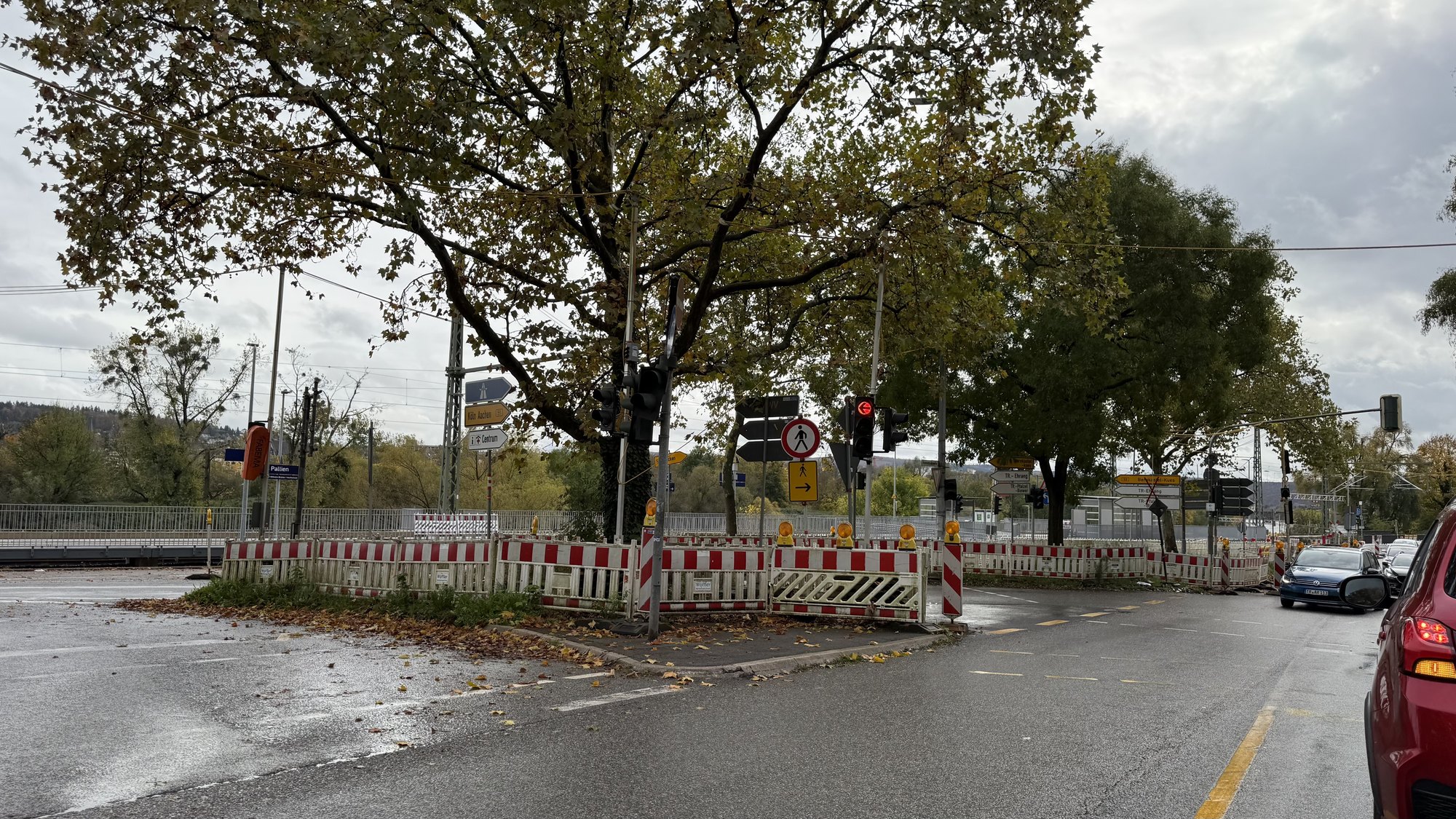 Nach Angaben der Bahn wird in Pallien derzeit an Treppenanlagen und Aufzugstürmen gearbeitet, die künftig den Zugang zur Kaiser-Wilhelm-Brücke ermöglichen sollen. Aufgrund der beengten Platzverhältnisse bleibt die betroffene Spur weiterhin gesperrt und wird als Baustellenfläche genutzt. Erst nach Abschluss sämtlicher Arbeiten könne die Straße wieder vollständig freigegeben werden.