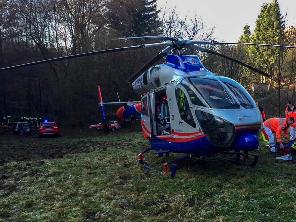 Im Gerätehaus in Thomm hatte zeitgleich ein Erste-Hilfe-Kurs stattgefunden, sodass innerhalb von wenigen Minuten Feuerwehr und First Responder an der Unfallstelle ankamen. Aufgrund des schlechten Geländes mussten Fahrzeuge ohne Allradantrieb und Geländegänigkeit rund 500 Meter von der Einsatzstelle entfernt im Bereitstellungsraum stehen bleiben. Da die verletzte Person nicht so weit durch das unwegsame Gelände bis zum Rettungswagen transportiert werden konnte, forderte der Wehrleiter nach Rücksprache mit dem Notarzt vor Ort einen Rettungshubschrauber nach, der auf einer kleinen Lichtung landen konnte. Die verletzte Person wurde mit dessen Hilfe aus dem Wald geflogen und der Besatzung des Rettungswagens übergeben. Im Einsatz waren etwa 40 Kräfte der Feuerwehren und des Rettungsdienstes. Gegen 12.45 Uhr hatten alle Fahrzeuge wieder Einfahrt in ihre Gerätehäuser. Text und Bilder: Daniel Luy/ Pressesprecher Feuerwehr VG Ruwer