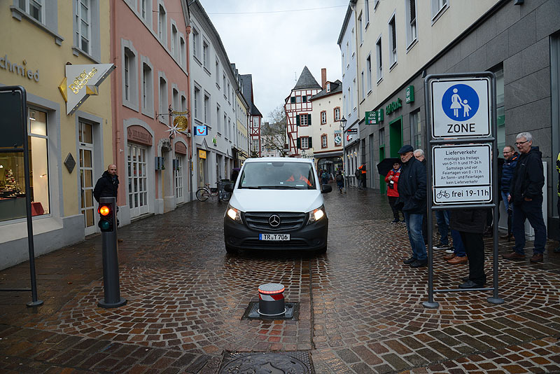 Er ist 80 Zentimeter hoch, aber bei Bedarf verschwindet er komplett im Boden: Der Trierer "Ur-Poller" in der Glockenstraße ist seit Dezember in Betrieb. Jetzt plant das Rathaus, an 18 weiteren Zufahrtspunkten zur Fußgängerzone automatisch versenkbare Poller oder dauerhafte Blockaden zu errichten.