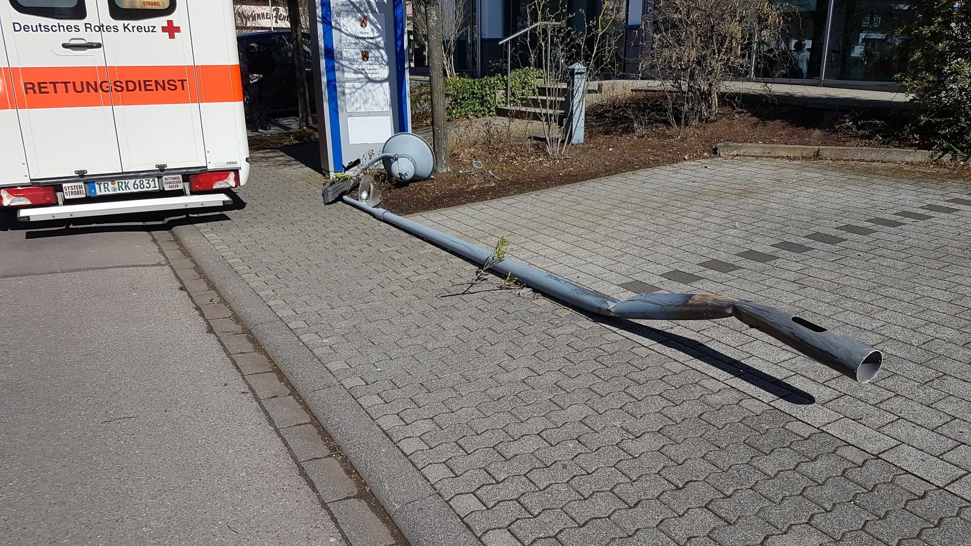 Zu einem Unfall ist es am Dienstag, 19. März, gegen 12.55 Uhr in der Bernhard Beckerstraße in Schweich gekommen. Eine Autofahrerin hatte mit ihrem Fahrzeug eine Laterne umgefahren. Die Frau wurde bei dem Unfall verletzt.