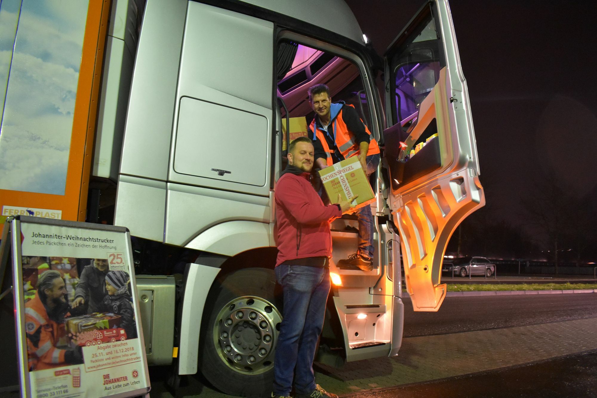 Bis buchstäblich auf den allerletzten Drücker sind die Menschen in diesem Jahr auf den Johanniter-Weihnachtstrucker "aufgesprungen": Noch am Abholtag, einen Tag nach dem offiziellen Sammelstopp, kamen verschiedene Spender mit Nachzügler-Paketen, teils noch als der große Sattelschlepper schon vor der Dienststelle in der Trierer Loebstraße stand. Dort haben ein gutes Dutzend Helfer fast drei Stunden lang bis in den Abend hinein die exakt 664 Hilfspakete per Hand aus dem Johanniter-Foyer in den großen LKW verladen. Fast zehn Tonnen Hilfsgüter haben die Menschen in der Region dafür gespendet, Schulklassen, Kitagruppen, Vereine und Einzelgeber. Gesammelt wurde außer in Trier unter anderem in Ehrang, Schweich, Waldrach, Hermeskeil, Bitburg, Wittlich, Morbach, Konz und Saarburg.