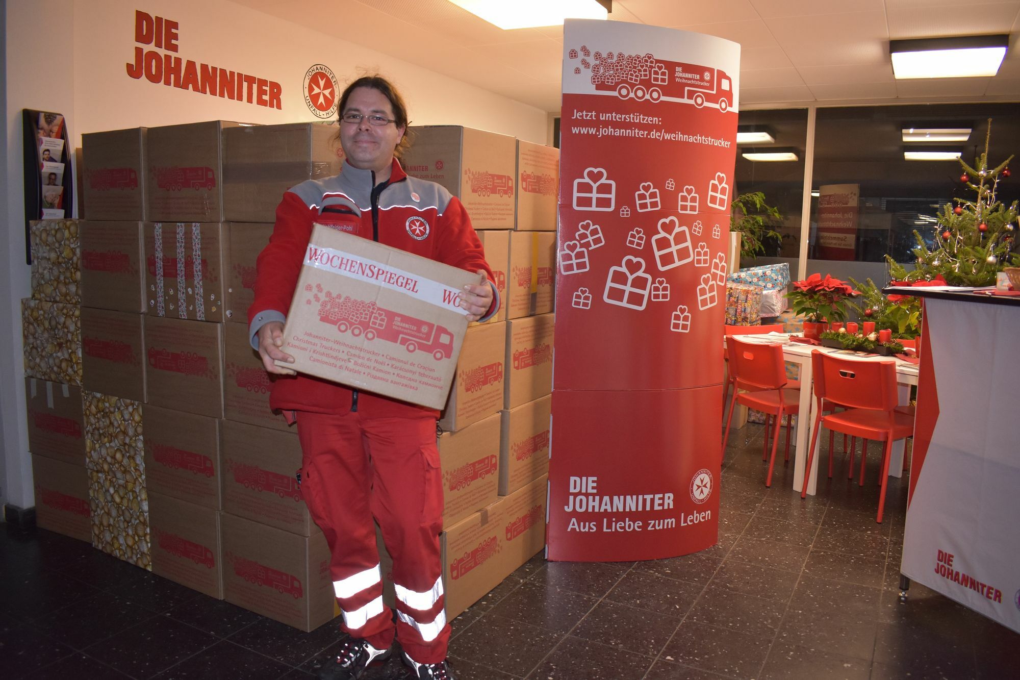 Als einer der allerersten bundesweit hat der Johanniter-Regionalverband Trier-Mosel am Montag, 17. Dezember, seine 664 Hilfspakete auf die Reise zu Bedürftigen nach Südosteuropa geschickt. Befüllt durch eine lange Menschenkette konnte der ehrenamtlich gefahrene Riesensattelzug mit mehr als doppelt so vielen Paketen wie letztes Jahr starten.