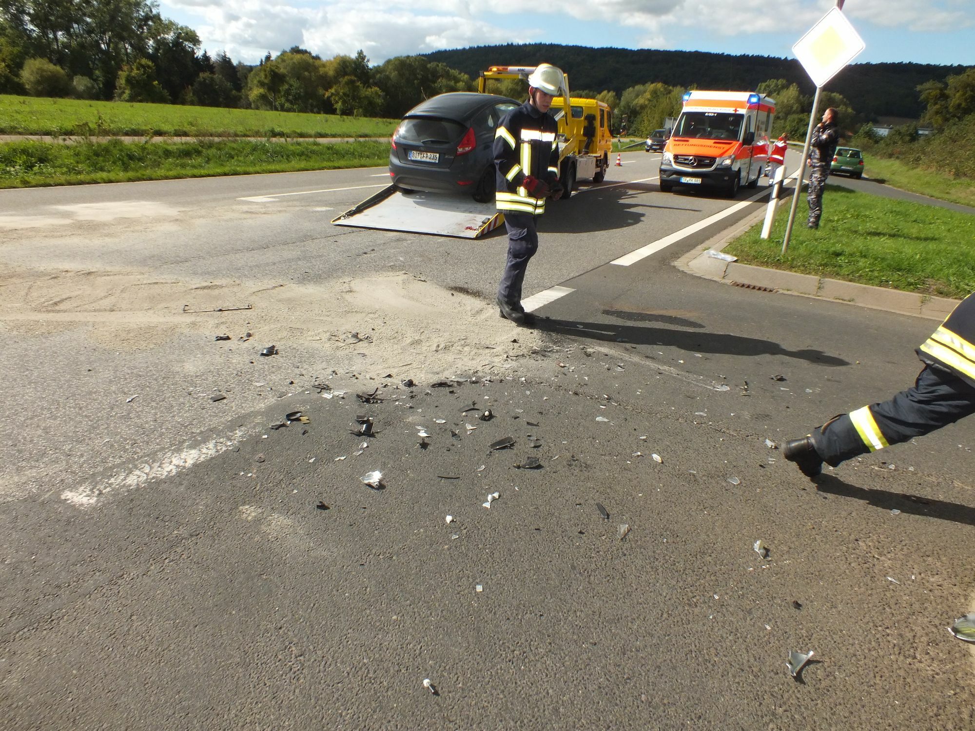 Bei dem Unfall wurden beide Autofahrer leicht verletzt. Die Feuerwehr sicherte die Unfallstelle und beseitigte ausgelaufene Betriebsstoffe. Die Polizei leitete den Verkehr an der Unfallstelle vorbei. Es kam zu kleineren Behinderungen. Wie hoch der Sachschaden an den Autos ist, steht derzeit noch nicht fest. Im Einsatz war die Feuerwehr Schweich, das DRK aus Schweich und Ehrang mit Notarzt, sowie die Polizei Schweich. Fotos: Agentur Siko