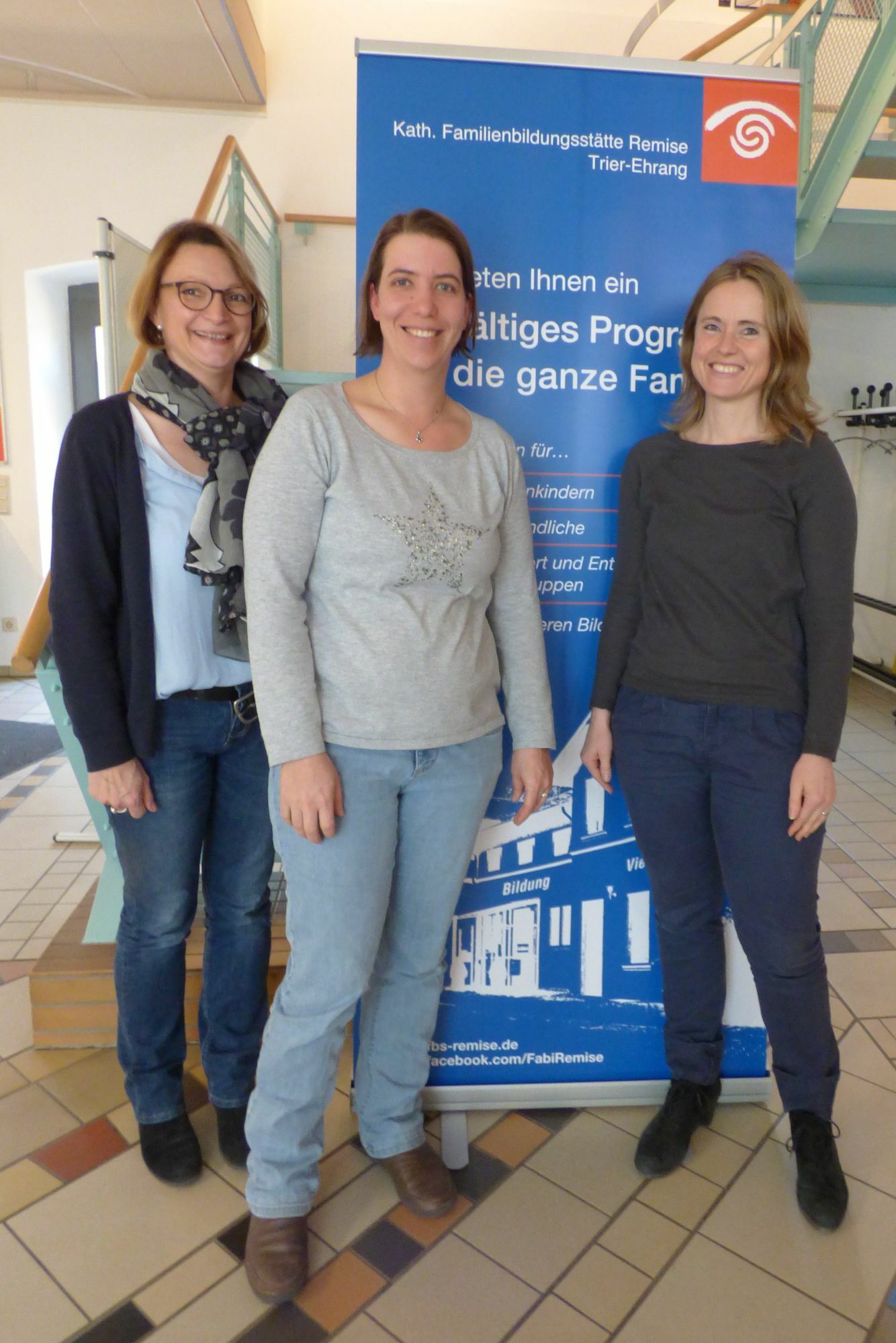 Freuen sich über die neue Kooperation: Bruni Steinmetz, Leiterin der Kath. Familienbildungsstätte Remise, Isabelle Weber-Wertz, Sozialpädagogische Referentin und Wiedereinstiegsberaterin Dagmar Klimperle. Foto: FF
