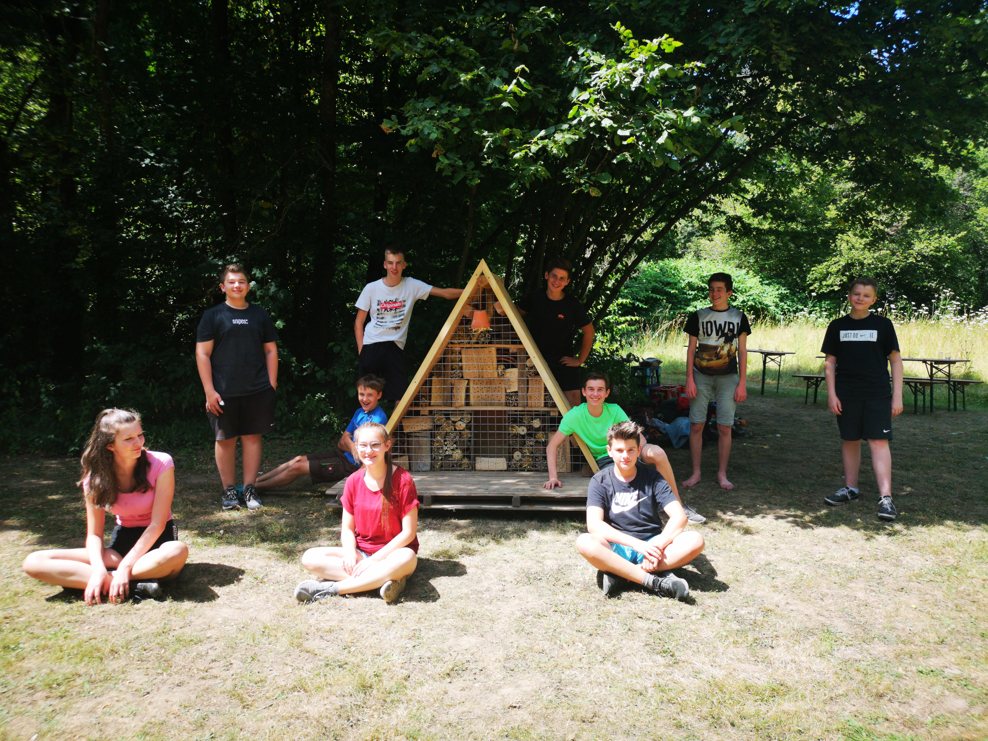 Es ist ein 1,80 m breites und 1,60 m hohes Insektenhotel entstanden, in dem zukünftig Wildbienen, Hummeln, verschiedene Wespenarten, wie Schlupf-, Falten-, Grab- oder Wegwespen, Florfliegen, Marienkäfer, Ohrwürmer und andere ihren Unterschlupf finden. Als Standort wurde eine sonnige Stelle im Hammes-Park in Waldrach gewählt. Für die Verpflegung hat die Ortsgemeinde Waldrach gesorgt: Eis war in der Hitze eine willkommene Abkühlung und die gegrillten Würstchen zum Abschluss haben nach getaner Arbeit besonders gut geschmeckt. Den Jugendlichen, die selbst die Idee für das Projekt entwickelt hatten, hat es sehr viel Spaß gemacht und sie haben bereits Überlegungen angestellt, zu einem späteren Zeitpunkt unter Anleitung durch den Förster weitere handwerkliche Aktivitäten umzusetzen, so zum Beispiel den Bau von Vogelhäuschen. (RED)