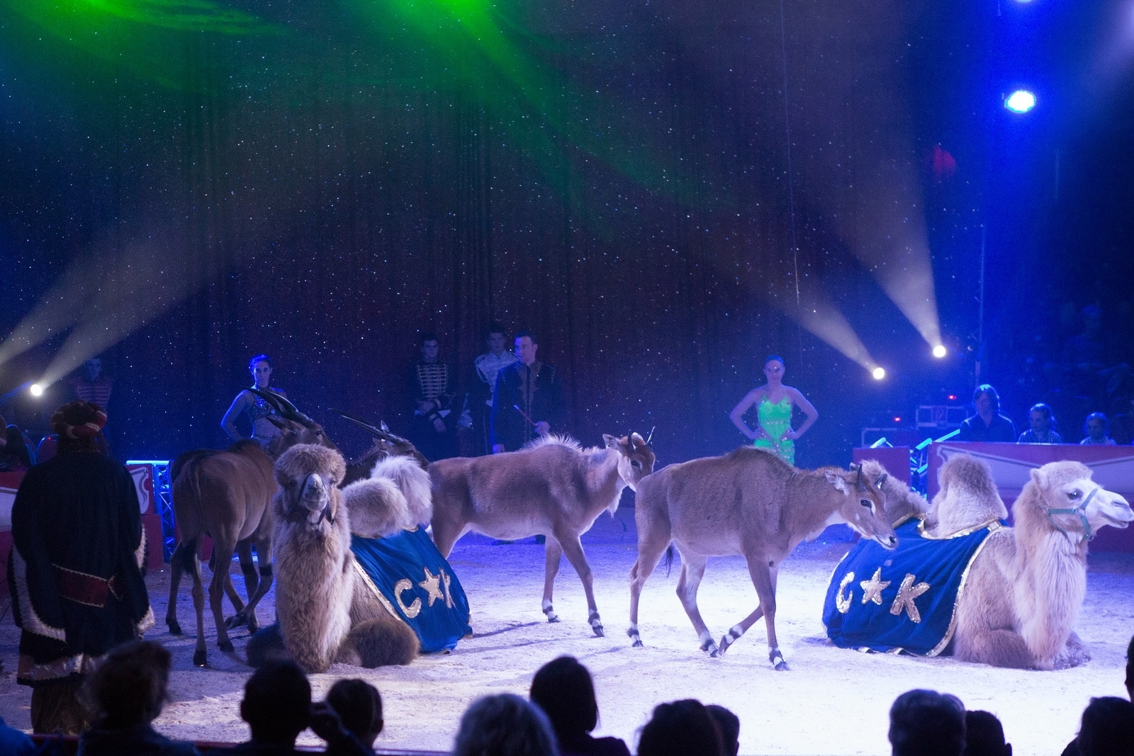 Europas größtes und artenreichstes Exoten-Tableau: Antilopen, Watussirinder, ein schottisches Hochlandrind, Bison, Büffel, Kamele, Lamas, Esel, afrikanische Strauße und vieles mehr. Nur durch viel Vertrauen und Einfühlungsvermögen ist es möglich, all die unterschiedlichen Charaktere in einer Dressur zu vereinen.