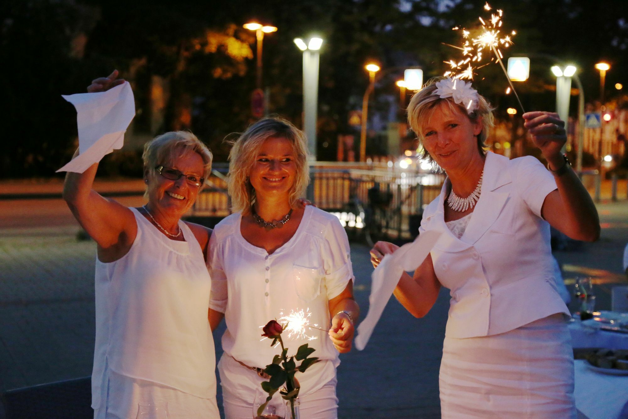 Die Besucher kamen nicht nur ganz in weiß gekleidet, sondern brachten auch Tische Stühle und Deko mit. Sie gaben dem Viehmarkt damit ein ganz besonderes Aussehen. Musikalisch untermalt wurde der Abend von Bernd Diedrich. Er spielte auf seinem Piano Swing- und Pop-Klassiker. In seinen Pausen unterhielt eine mechanischen Drehorgel das Publikum. Bei Einbruch der Dunkelheit wurden an fast allen Tischen Wunderkerzen gezündet und weiße Taschentücher geschwenkt. Auch im nächsten Jahr soll es wieder ein "Weißes Dinner" geben. Als Termin ist der 13. August angesetzt. Weitere Infos gibt es hier.