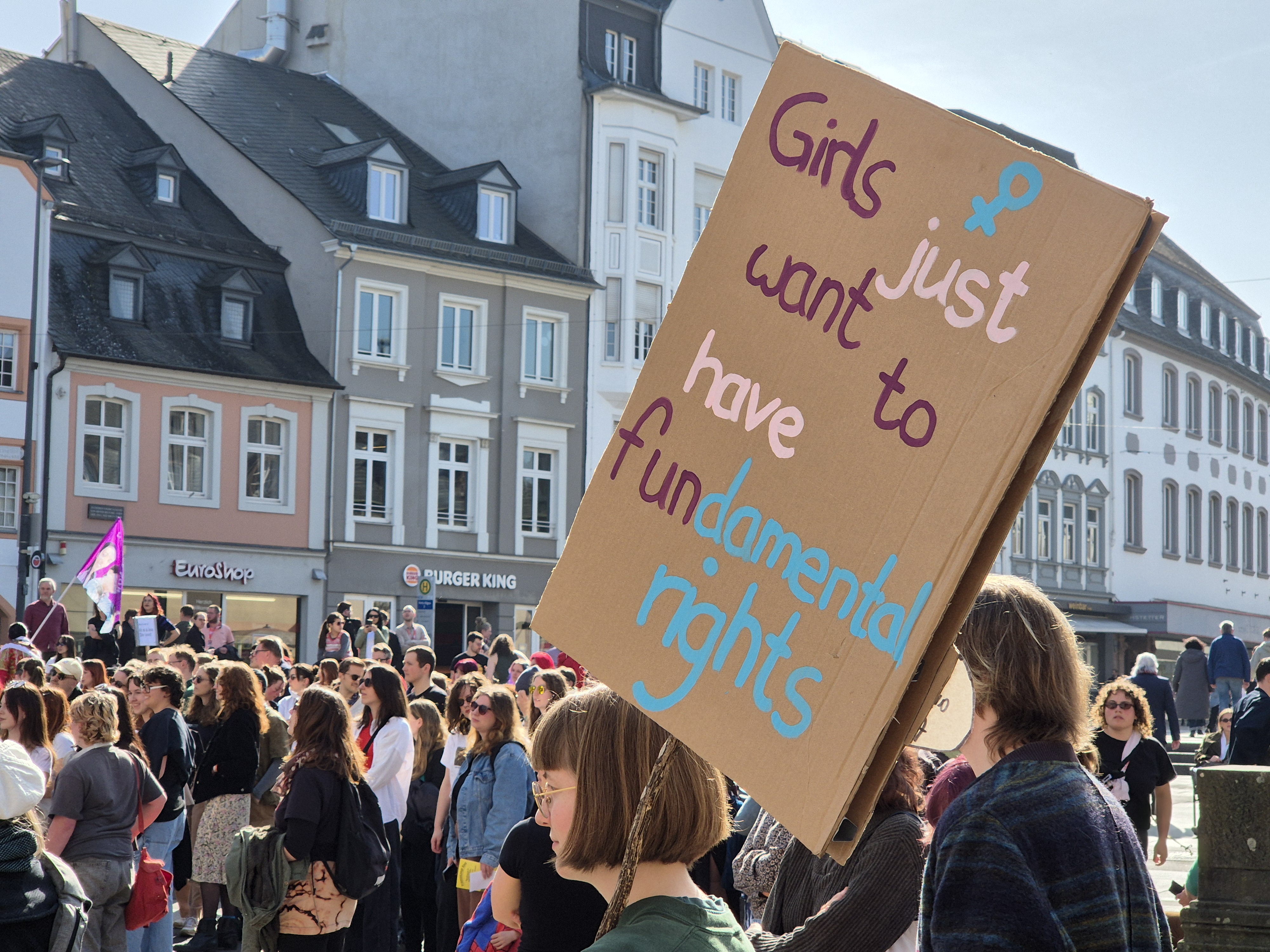 Am Sonntag, 8. März, dem Internationalen Frauentag, fand an der Porta Nigra eine Auftaktkundgebung unter dem Motto „Feministischer Widerstand weltweit“ statt.