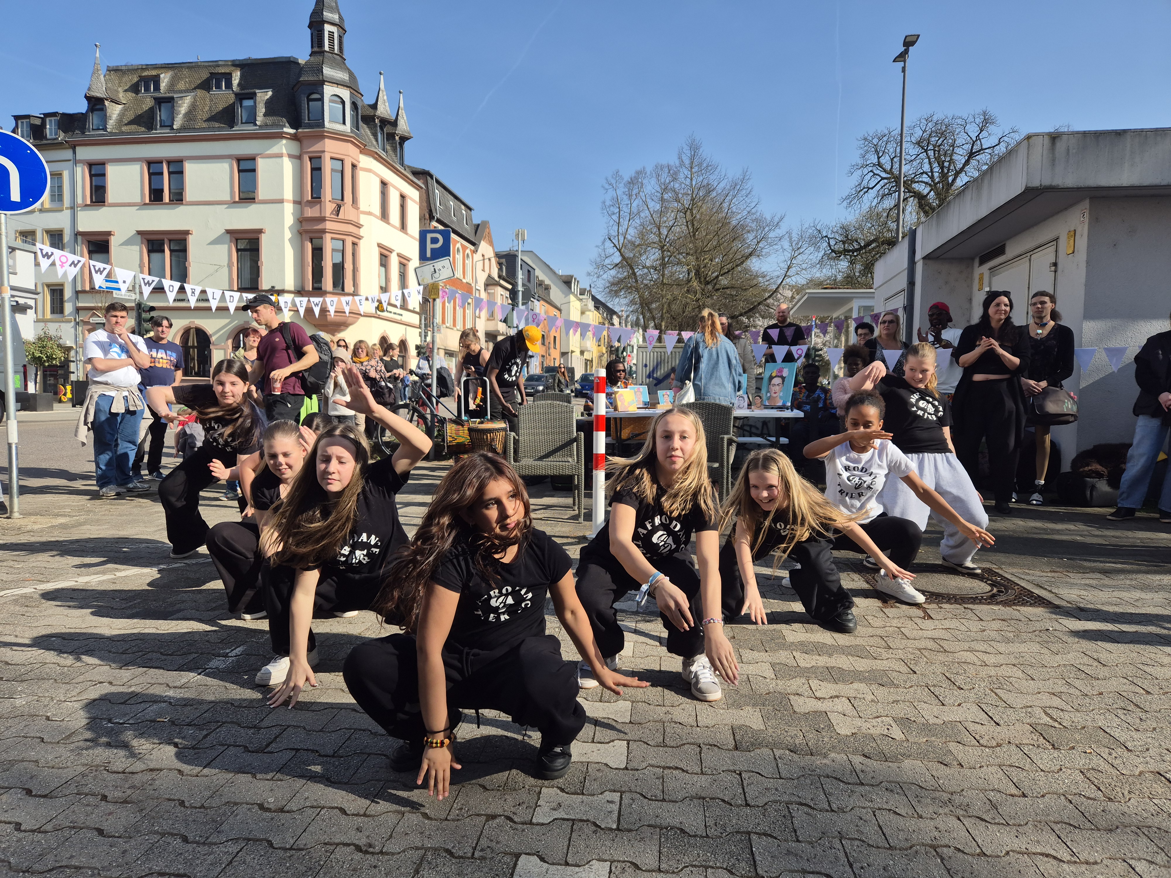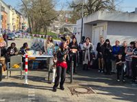 Ebenfalls am Sonntag fand am Künstlerhäuschen in der Saarstraße, Ecke Südallee, ein Tanz- und Sing-Flashmob statt.