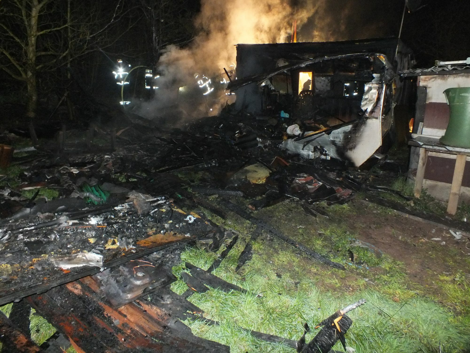 Gegen 22.30 Uhr hatten Anwohner ein Feuer auf dem Verbindungsweg zwischen den Stadtteilen Euren und Zewen gemeldet. Ein Wohnwagen war bei dem Feuer völlig abgebrannt. Ein angrenzendes Holzhaus wurde von den Flammen ebenfalls stark beschädigt. Zwei weitere Wohnwagen blieben unversehrt. Der Sachschaden wird auf mehrere tausend Euro geschätzt. Die Polizei hat Aufbruchspuren an einer der Holzhütte feststellen können. Diese dürften aber älter sein sein und eher nicht im Zusammenhang mit dem Feuer stehen. Laut Emittlungen sind die Wohnwagen und die Holzhütte offenbar längere Zeit nicht mehr von ihren Besitzern benutzt wurden. Zeugen berichten aber, dass Unbekannte hin und wieder den abgebrannten Wohnwagen zum Übernachten genutzt hätten. Die Polizei schließt nicht aus, dass das Feuer fahrlässig oder absichtlich entstand. Auch einen Zusammenhang mit den Bränden am 25. und 31. März in Trier-Zewen schließen die Ermittler nicht aus. Hinweise an die Kripo Trier, Telefon 0651/9779-2290 oder -2211. Fotos: Agentur Siko