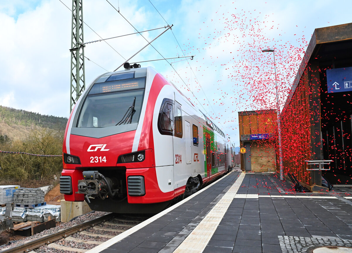 Fahrgäste und Anwohnende profitieren in wenigen Tagen von klaren Verbesserungen im ÖPNV auf der Schiene: Ab dem 3. März können die Kundinnen und Kunden auf der reaktivierten Weststrecke Trier die komplett neu errichteten Verkehrsstationen Trier-Hafenstraße, Trier-Pallien, Trier-West, Trier-Euren und Trier-Zewen für den Zugang zur Bahn nutzen. Zwei Regionalzuglinien fahren dann auf der 19 Kilometer langen Strecke in einem attraktiven 30-Minuten-Takt und sorgen für bessere grenzüberschreitende Verbindungen. Neben den Stationen hat die Deutsche Bahn (DB) die Schieneninfrastruktur auf der Verbindung von der Moselstrecke zur Trierer Weststecke neu errichtet. Das Reaktivierungsprojekt konnte im engen Schulterschluss mit dem Bund, dem Land Rheinland-Pfalz, der Stadt Trier und dem SPNV-Nord in einer Bauzeit von nur gut zwei Jahren realisiert werden. Erstmals seit 1983 fahren damit wieder Personenzüge auf der linken Moselseite von Trier – ein klares Plus für die gesamte Region und darüber hinaus.