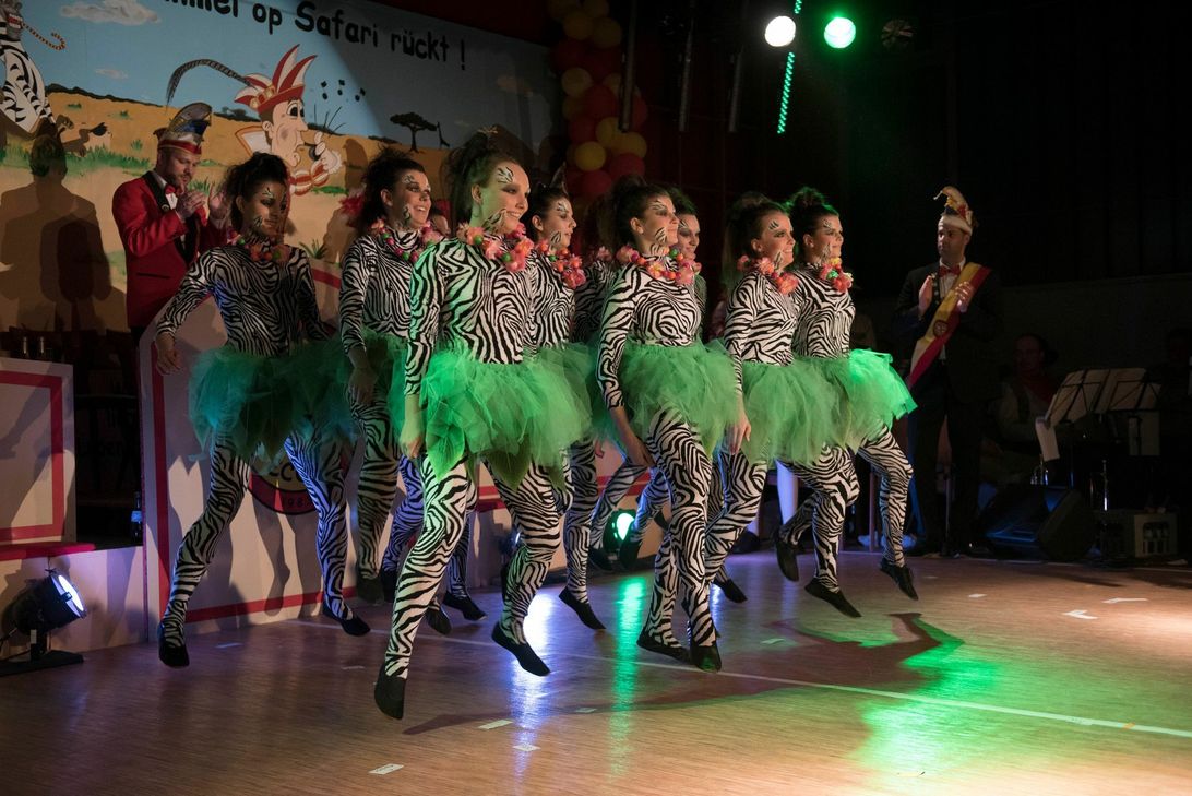In der aufwändig und mit viel Liebe zum Detail geschmückten Narhalla lautete das Motto „Löw & Zebra sind verzückt, wenn Emmel op Safari rückt!“. Erster Höhepunkt des Abends war der Auftritt des neuen Prinzen Prinz Michel II. „Daat loo hunn eeich net geseeihn“ (Michael Müller). Ebenso sorgte die ECC Prinzengarde mit einem schwungvollen Gardetanz für gute Stimmung. Ludwin Schmitt strapazierte die Lachmuskeln der Zuschauer, als er das Dorfgeschehen des vergangenen Jahres Revue passieren ließ. Dirk Lorenz erzählte von seiner kuriosen Safari durch den Hühnerstall und Manuela und Matthias Schu unterhielten das Publikum mit einem pfiffigen Zwiegespräch zwischen einem Ehepaar, bei dem der Unterschied nicht größer sein kann. Die „Zebras“ von der ECC Prinzengarde begeisterten das Publikum mit einem wilden Showtanz. Unumstrittener Höhepunkt und Finale war der erstmalige Auftritt von „De Gaäckisch Knippcha“, die mit ihrer Musik alle im Saal mitreißen konnten. mw/Fotos: Willems