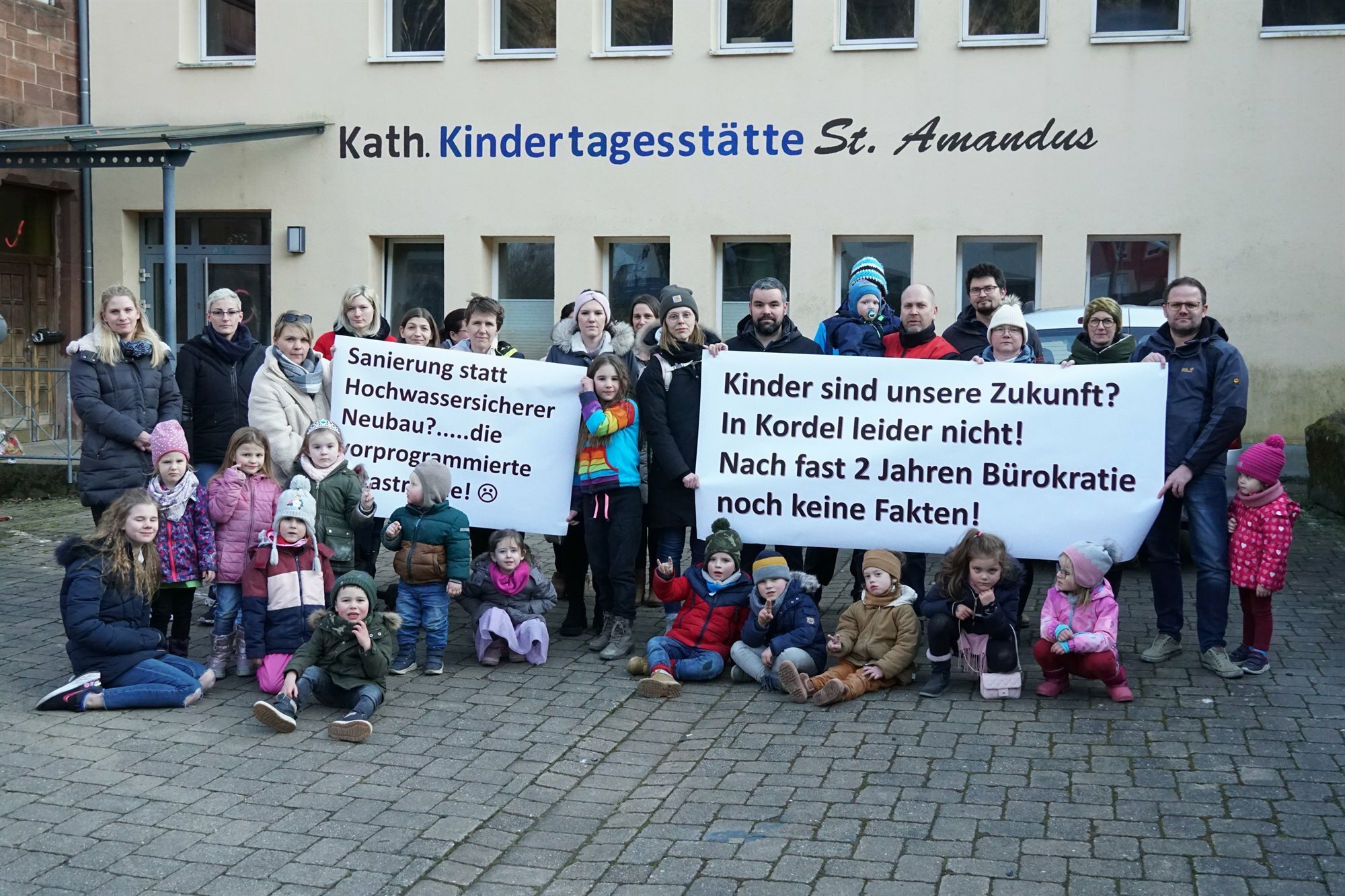 »Wir sind am Ende unserer Kräfte und verzweifelt. Bitte helfen Sie uns dabei, unseren Kindern und uns als Eltern wieder mehr Normalität in Aussicht zu stellen.« So steht es in einer Brand-E-Mail, die vor wenigen Tagen die Redaktion erreichte. Absenderin Desiree Planche ist eine von rund 20 Eltern, die sich mit Kindern vor der Kita St. Amandus in Kordel zu einem Ortstermin versammelten, um sich Luft zu machen und darüber zu sprechen, was sie sich von der Kommune und anderen Entscheidungsträgern erhoffen.