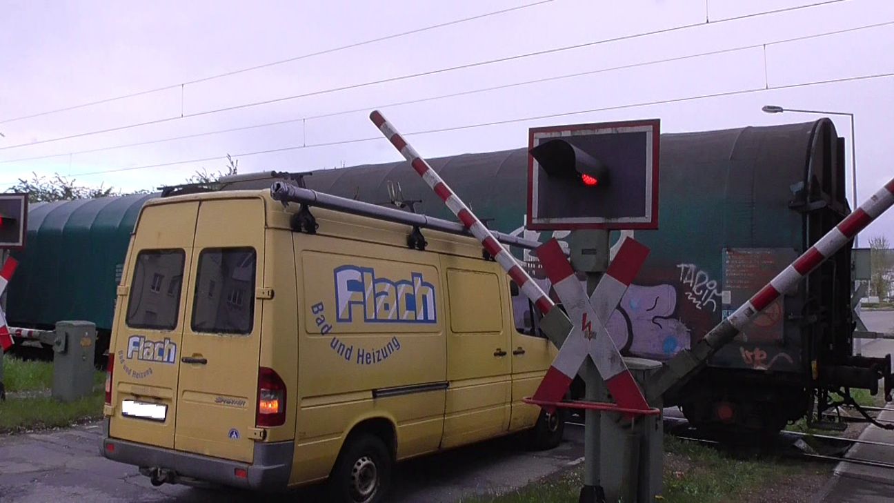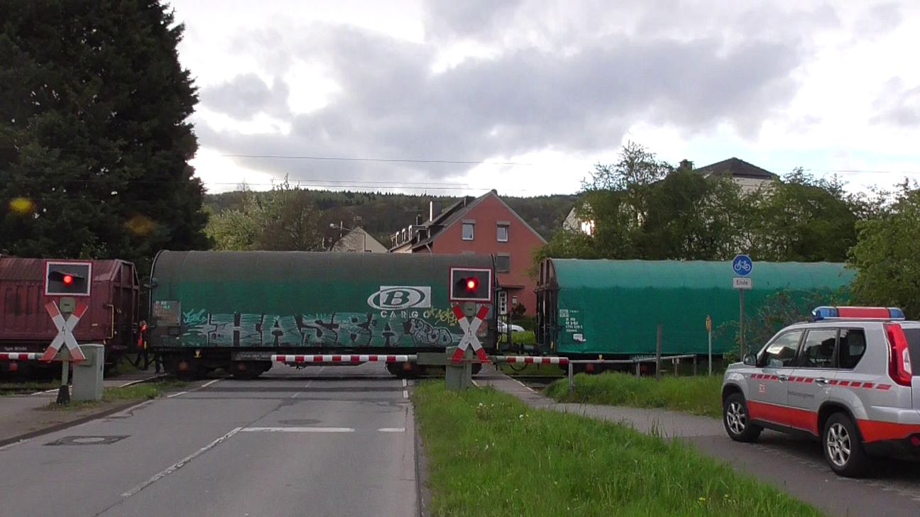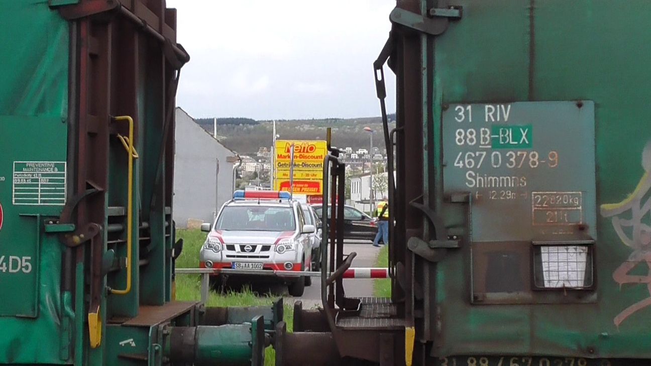 Ein Ehepaar war mit seinem Trasporter auf der Eisenbahnstraße in Richtung der B 49/ Luxemburgerstraße unterwegs. Am dortigen Bahnübergang waren die Schranken oben, das Rotlicht aus. Der Fahrer bremste leicht ab, um den Übergang zu überqueren. Instiktiv schaute er an den Gleisen nach links und rechts. In unmittelbarer Entfernung sah er einen Güterzug auf den Bahnübergang zurollen. Der Fahrer des Transporters machte eine Vollbremsung, legte den Rückwärtsgang ein und drückte auf das Gaspedal. Unmittelbar vor dem vorbeifahrenden Zug kam er zum Stehen. In diesem Moment senkten sich auch die Schranken. Der Zugführer des Güterzuges leitete sofort eine Notbremsung ein und kam einige Meter nach dem Bahnübergang zum stehen. Zwischen dem Transporter und dem Zug waren nur wenige Zentimeter Platz. Polizei und Notfallmanagment der Deutschen Bahn wurden alarmiert. Vor Ort konnte sich die Bahn noch nicht zu dem Zwischenfall äußern. An dem Transporter entstand nur ein geringer Schaden. Verletzt wurde niemand. Die Zivilpolizei sperrte die Straße voll ab. Autofahrer mussten einen Umweg durch die Eurenerstraße und die Straße "Im Speyer" fahren. Fotos: Agentur Siko