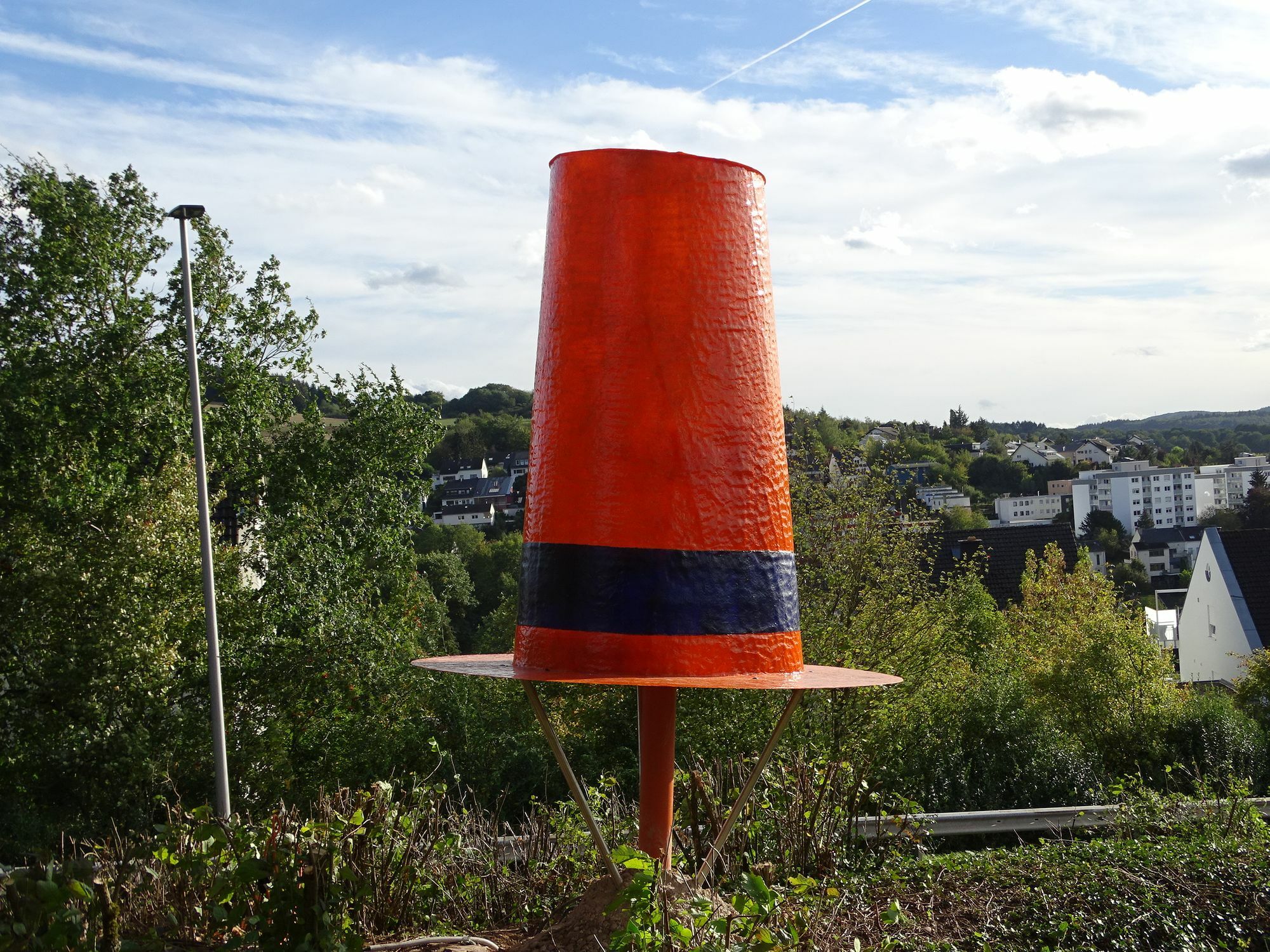 Der Konzer "Kreiselkünstler" Harald Pompl hat zum zehnjährigen Bestehen der Konzer-Doktor-Bürgerstiftung ein neues Kunstwerk geschaffen: eine Skulptur in Form eines Doktorhutes.