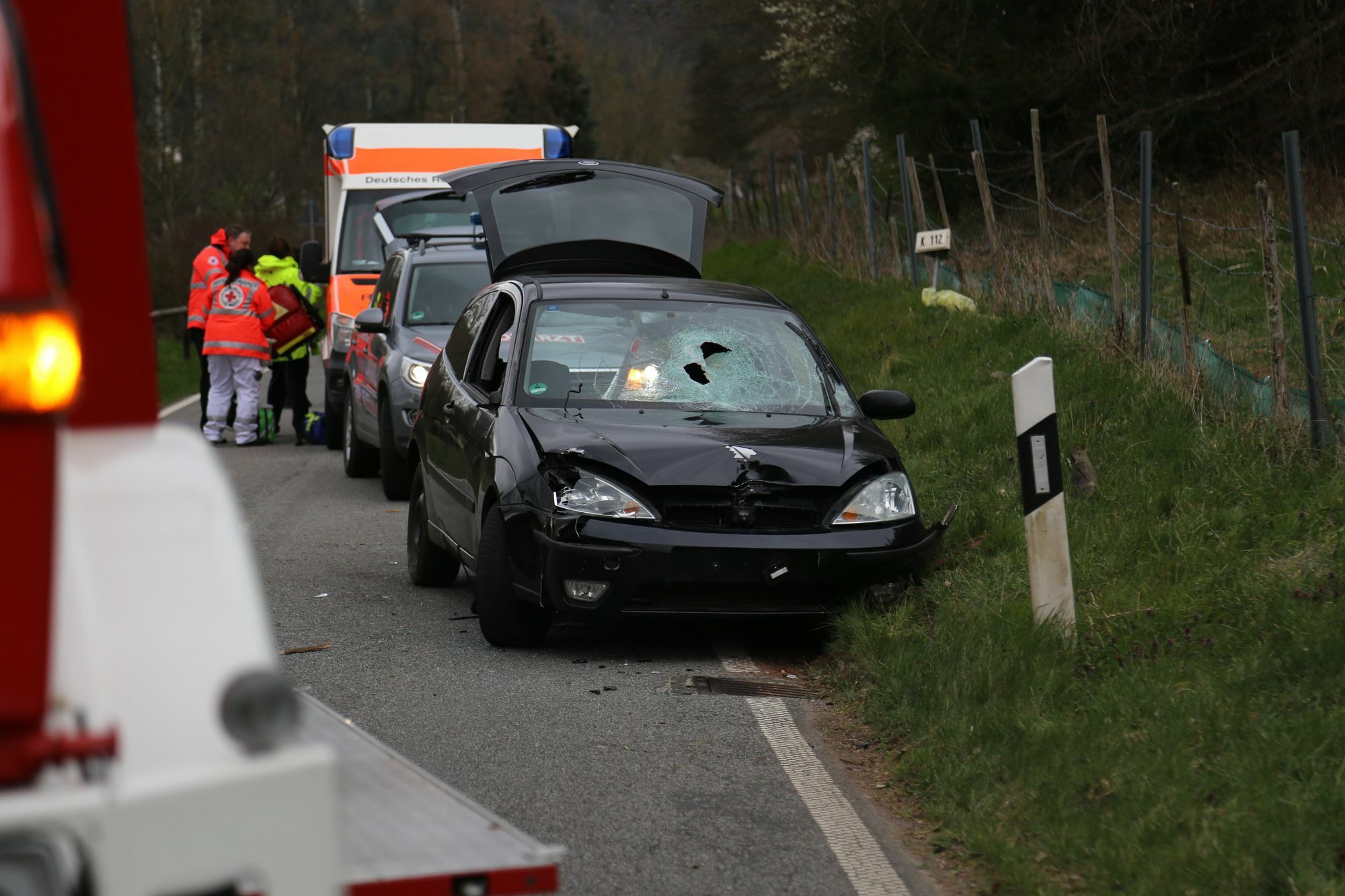 Ein 20- Jähriger hatte kurz hinter dem Ortsausgang Tawern die Kontrolle über sein Fahrzeug verloren. Er kam von der Fahrbahn ab, durchbrach ein Holzgeländer und kam wieder auf der Fahrbahn zum stehen. Der Fahrer und die 17-jährige Beifahrerin kamen mit Verletzungen in ein Krankenhaus. Beide hatten riesiges Glück: Ein Holzpfosten, der die Windschutzscheibe durchbohrte, verletzte keinen der beiden. Die Unfallursache ist laut Polizei überhöhte Geschwindigkeit. Die Kreisstraße 112 blieb für Rettungs- und Bergungsarbeiten voll gesperrt. Im Einsatz waren die Feuerwehren aus Tawern und Konz, der Wehrleiter der VG Konz, ein Notarzt, ein Rettungshubschrauber der Luxemburger Air Rescue, ein Rettungswagen der Rettungswache Konz, ein Rettungswagen der Berufsfeuerwehr Trier und die Polizei. RED, Fotos: WSTTV