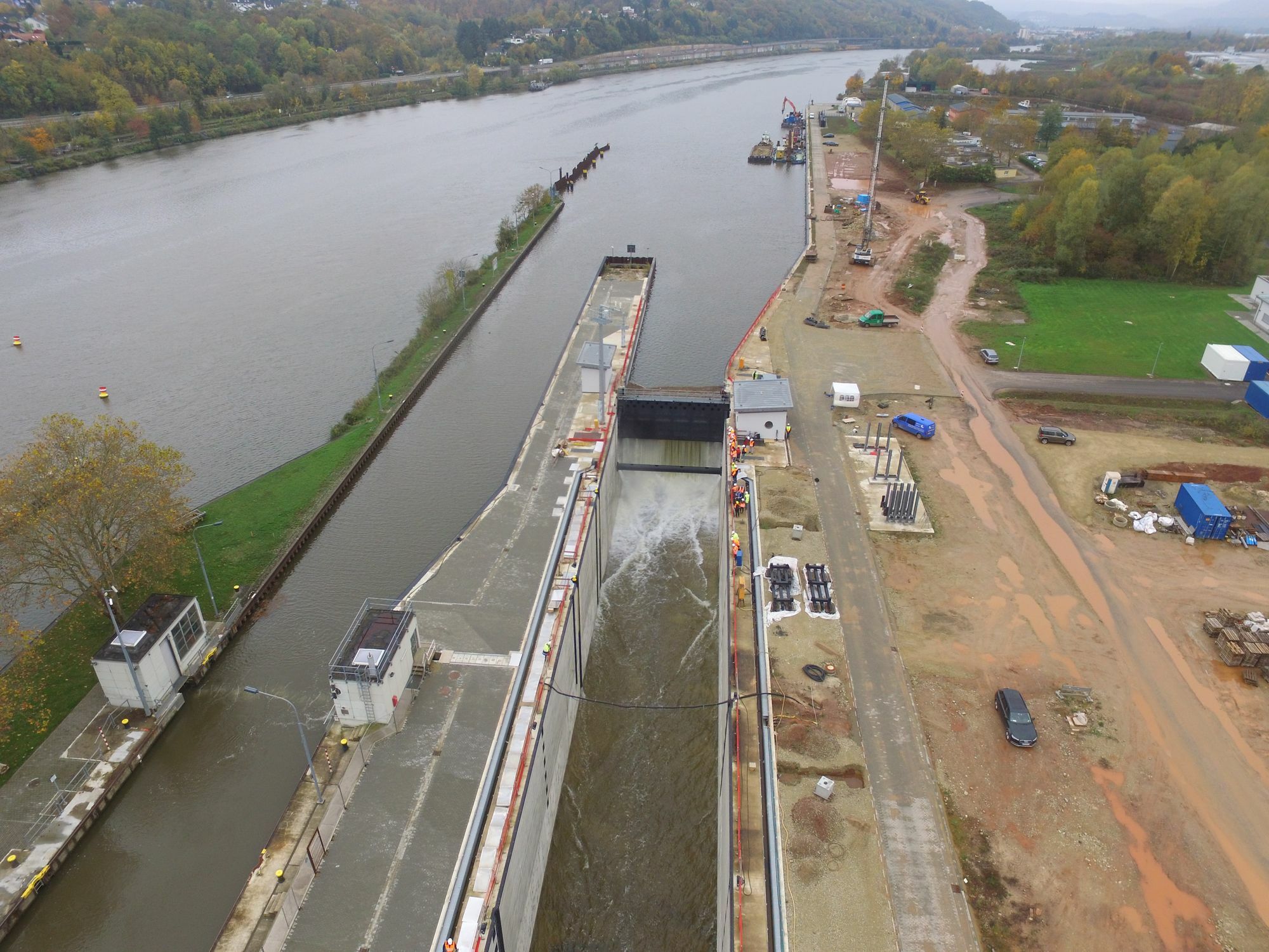 Am Mittwoch, 6. November, wurde zum ersten Mal Wasser in die Schleusenkammer geleitet. "Wir sind stolz, dass ein weiterer Meilenstein in Richtung Eröffnung der zweiten Schleusen-kammer in Trier erreicht sein wird", so Albert Schöpflin, Leiter des WSA Mosel-Saar-Lahn. Folgen sollen im Anschluss Probeschleusungen und die Feineinstellung des komplexen Systems Schleusenkammer, bevor Anfang nächsten Jahres die Kammer feierlich eröffnet wird und für die Schifffahrt freigegeben werden kann. RED, Fotos/Video: WSTV