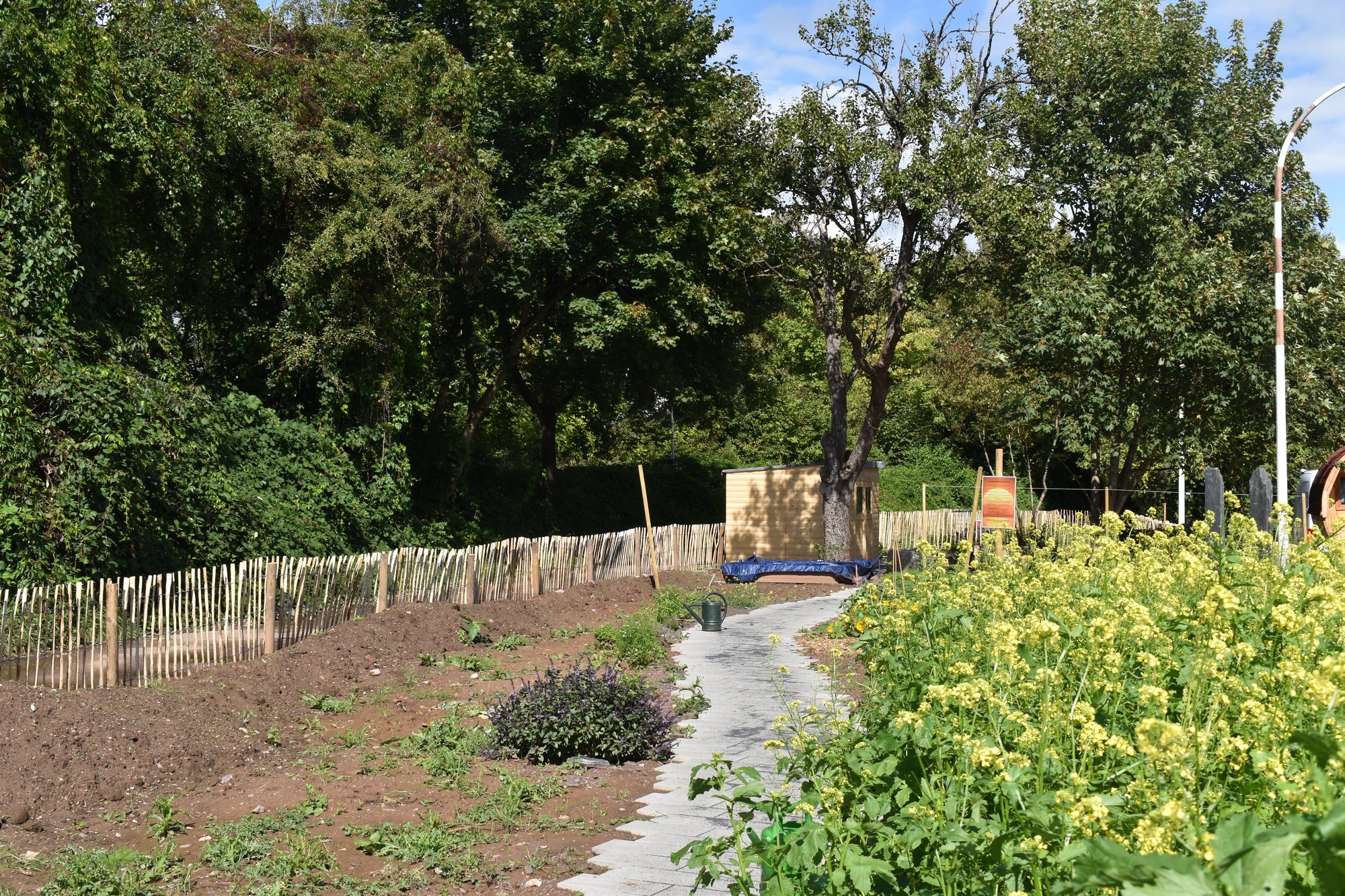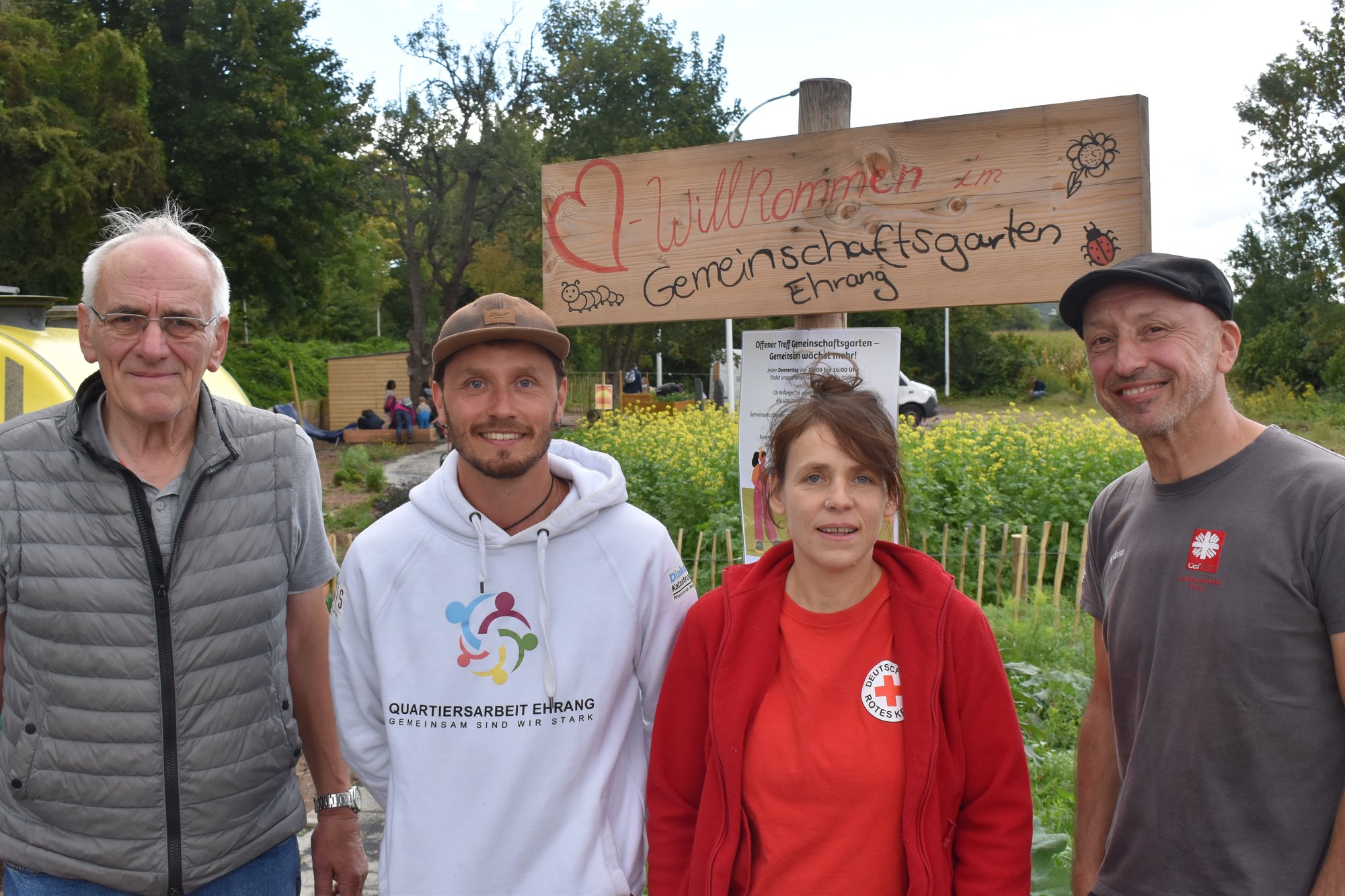 Anfang Juli wurde der Gemeinschaftsgarten mit einer Fläche von rund 550 Quadratmetern eröffnet. Vereine und Initiativen luden zum Mitmachen ein. Seitdem wächst der Garten: Hochbeete, ein Kräuterpfad mit bemalten Infosteinen, ein Sonnentor, Blumenflächen, Salat-, Gemüsebeete, ein Sitzkreis sowie ein Gartenhaus gehören bereits dazu. Ein Tiny House vom Palais e.V. dient der Grundschule Ehrang als Klassenzimmer für ihre Garten-AG.