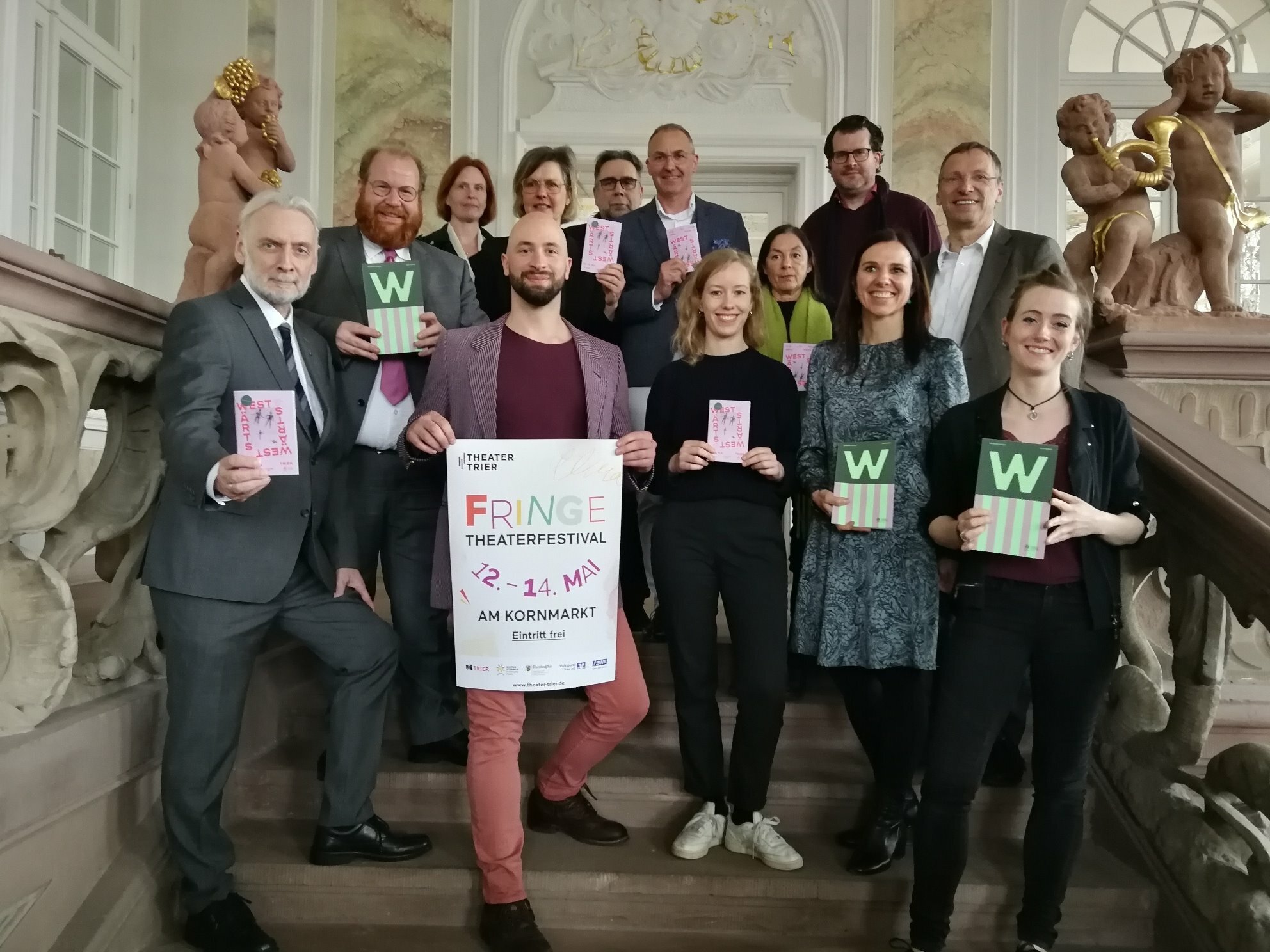 (sk) Es wird bunt, es wird laut, es wird anders - Straßentheater, Akrobatik, Clownerie, Musik und Tanz gepaart mit kulinarischen Genussangeboten geben am zweiten Maiwochenende eine Gute-Laune-Garantie. Zum zweiten Mal seit 2005 bestreitet Trier heuer die Eröffnung des rheinland-pfälzischen Kultursommers. Denn als westlichste Stadt von Rheinland-Pfalz ist der Moselmetropole das diesjährige Motto sprichwörtlich auf den Leib geschrieben: "Kompass Europa: Westwärts". Im Herzen Europas gelegen, soll deshalb auch das Programm in Trier grenzenlos sein, das vom 12. bis 14. Mai im Palastgarten und rund um die Konstantinbasilika bis hin zum Kornmarkt und der TUFA geboten wird. Im Rokokosaal des Kurfürstlichen Palais fand kürzlich die Pressekonferenz zur Eröffnung des rheinland-pfälzischen Kultursommers und zum FRINGE-Theaterfestival statt. Prof. Dr. Jürgen Hardeck, Staatssekretär im Ministerium für Familie, Frauen, Kultur und Integration Rheinland-Pfalz; Teneka Beckers, Gesamtleitung des Kultursommers Rheinland-Pfalz der Stiftung Rheinland-Pfalz für Kultur; Markus Nöhl, Kulturdezernent der Stadt Trier; Hanna Landwehr, Trier Tourismus und Marketing GmbH, Projektleiterin der Kultursommereröffnung in Trier sowie Paul Hess, Theater Trier, Projektleiter des FRINGE-Theaterfestivals, präsentierten die beiden espritgeladenen Veranstaltungsformate. Gemeinsam mit dem Theater Trier, das zum 2. Mal und in Kooperation mit dem Théâtre National du Luxembourg ein dreitägiges Kulturangebot der Spitzenklasse auf dem Kornmarkt bietet, will der diesjährige Kultursommer RLP mit seiner Eröffnungsfeier im Herzen von Trier - größtenteils kostenlos - die Großregion zum Mitmachen, Mitlachen und Mitsingen motivieren. Den offiziellen Startschuss zum rheinland-pfälzischen Kultursommer 2023 werden Ministerpräsidentin Dreyer, Kulturministerin Binz und Triers Oberbürgermeister Wolfram Leibe am Samstag, 13. Mai geben. Das Publikum kann sich allerdings bereits ab Freitag über internationale und regionale KünstlerInnen, französischen Genuss im Queergarten und Performances auf dem Kornmarkt freuen. Am Sonntag, 14. Mai wird das ereignisreiche Wochenende beim Chor- und Orgelkonzert in der Konstantin-Basilika ausklingen.