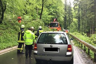 Bäume krachen auf Kreisstraße - Auto nur knapp verfehlt