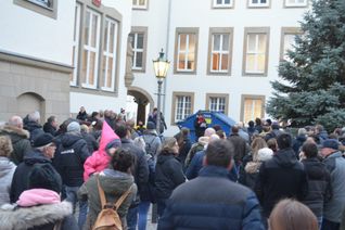 Eifelkreis Bitburg-Prüm Feuerwehr demonstriert gegen Bürgermeister 22.11.2018 Rund 120 Feuerwehrleute und Bürger demonstrierten am Nachmittag friedlich, aber lautstark, vor dem Rathaus in Bitburg. Anlass ist der aktuelle Streit zwischen Bürgermeister Joachim Kandels und Ex-Wehrleiter Manfred Burbach. Das Verwaltungsgericht hatte Kandels vergangene Woche Recht…