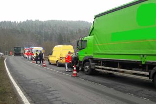 Landkreis Bad Kreuznach Unfall auf der B41: Lkw-Fahrer schwer verletzt 08.02.2018 Schwerer Unfall auf der B41 bei Weinsheim: Gegen 10.15 Uhr fuhr ein Lkw ungebremst in einen auf der Fahrbahn stehenden Lkw der Straßenmeisterei. Der Lkw-Fahrer wurde im Führerhaus eingeklemmt und schwer verletzt.