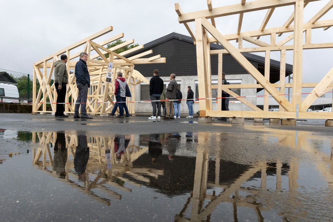 Lammersdorf. Seit 2012 richtet der Fachbereich Bauingenieurwesen für die Studierenden des sechsten Semesters ein Holzbauprojekt im Modul CAE-Holzbautechnologie aus – und zwar in Form eines Wettbewerbs. Es gilt, eine konkrete Aufgabe umzusetzen, von den ersten Planungsschritten bis hin zum fertigen Bau. Bei der zwölften Auflage traten 37 Studierende in drei Teams an – »so viele Teilnehmende hatten wir noch nie«, betonte Prof. Dr. Thomas Uibel, einer der betreuenden Professoren, bei der Abschlussveranstaltung am Bildungszentrum BGZ in Simmerath. In unmittelbarer Nähe baut die FH gerade das Aachener Zentrum für Holzbauforschung; zukünftig sollen an diesem Standort in Kooperation mit der Handwerkskammer Praxis und Theorie, Lehre und Forschung im Bereich Holzbau gebündelt werden.