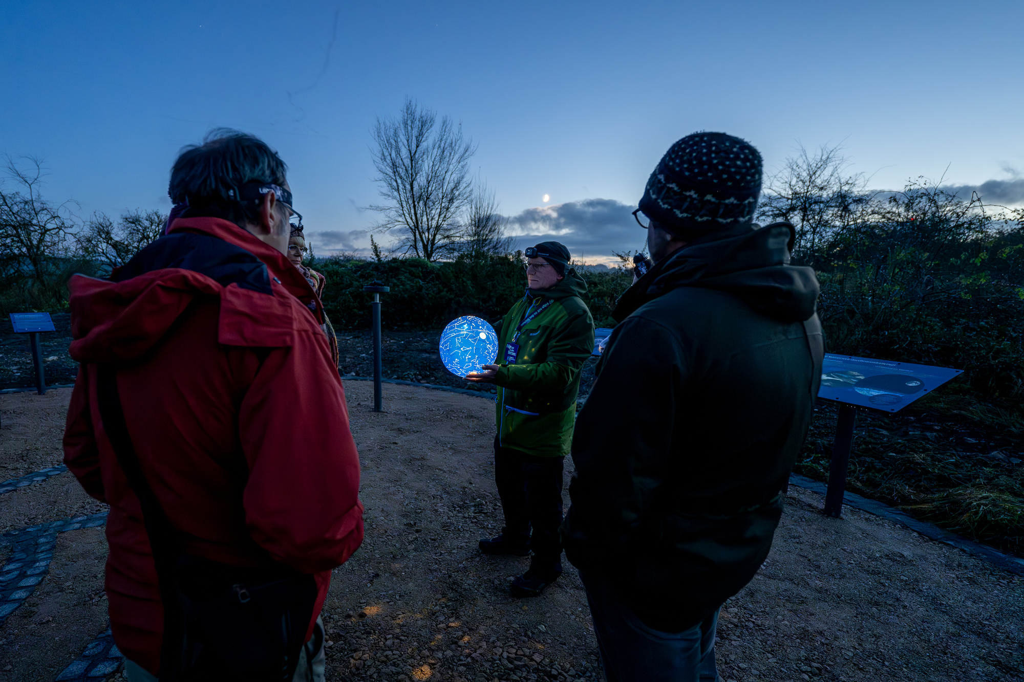 Während man in einer Stadt nachts nur 30 bis 50 Sterne sehen kann, bietet der Himmel rund um den Nationalpark Eifel 3000 bis 5000 Sterne. Auf eigene Faust oder in Begleitung eines ausgebildeten Sternenguides können sich die Nachtschwärmer aufmachen und den Sternenhimmel erkunden. Rainer Kuhl ist seit Dezember 2021 zertifizierter Sternenguide und teilt seine lebenslange Faszination für Sterne und Astronomie gerne mit den Besuchern. Bei einer "Sternenwanderung" oder "Sternenführung" reisen die Teilnehmer in eine andere Welt unter fachmännischer Anleitung. Dabei ist der Begriff "Wanderung" oft irreführend, denn wirklich gewandert wird kaum. "Bei einer Sternenführung wandern wir mit den Augen über den Himmel", erklärt Rainer Kuhl. Der Liebhaberastronom aus Lückerath brennt für die Sterne. "Diese Faszination für den Sternenhimmel habe ich schon seit meiner Kindheit und über die Jahre hat mich das Thema nie mehr losgelassen", strahlt Kuhl. Wegen der dunklen Nächte zog er 2019 in die Eifel, damit er während des bevorstehenden Ruhestands sein Hobby unter idealen Rahmenbedingungen ausüben kann. "Im Laufe der Zeit haben wir den Traum von einem Haus in lichtarmer Gegend entwickelt und nun haben wir unseren Platz im Sternenpark Eifel gefunden und mit meiner selbstgebauten Garten-Sternwarte kann ich nicht nur selber meinem Hobby nachgehen, sondern auch den Besuchern den Sternenhimmel zeigen, wie sie ihn noch nicht gesehen haben", freut sich Rainer Kuhl. Dank einer umgebauten Spiegelreflex-Kamera kann Kuhl die einzigartigen Momente am Himmel auch in Fotografien festhalten und die Faszination von bunten Nebeln und weit entfernten Galaxien, wie der Andromeda-Galaxie, für Menschen sichtbar machen. Den Besuchern seiner Touren erklärt er zum Beispiel die verschiedenen Sternbilder. Bei besten Wetterverhältnissen können sogar ferne Galaxien beobachtet werden und wie man den Polarstern am Himmel findet, wird kein Besucher einer Sternenführung so schnell wieder vergessen.