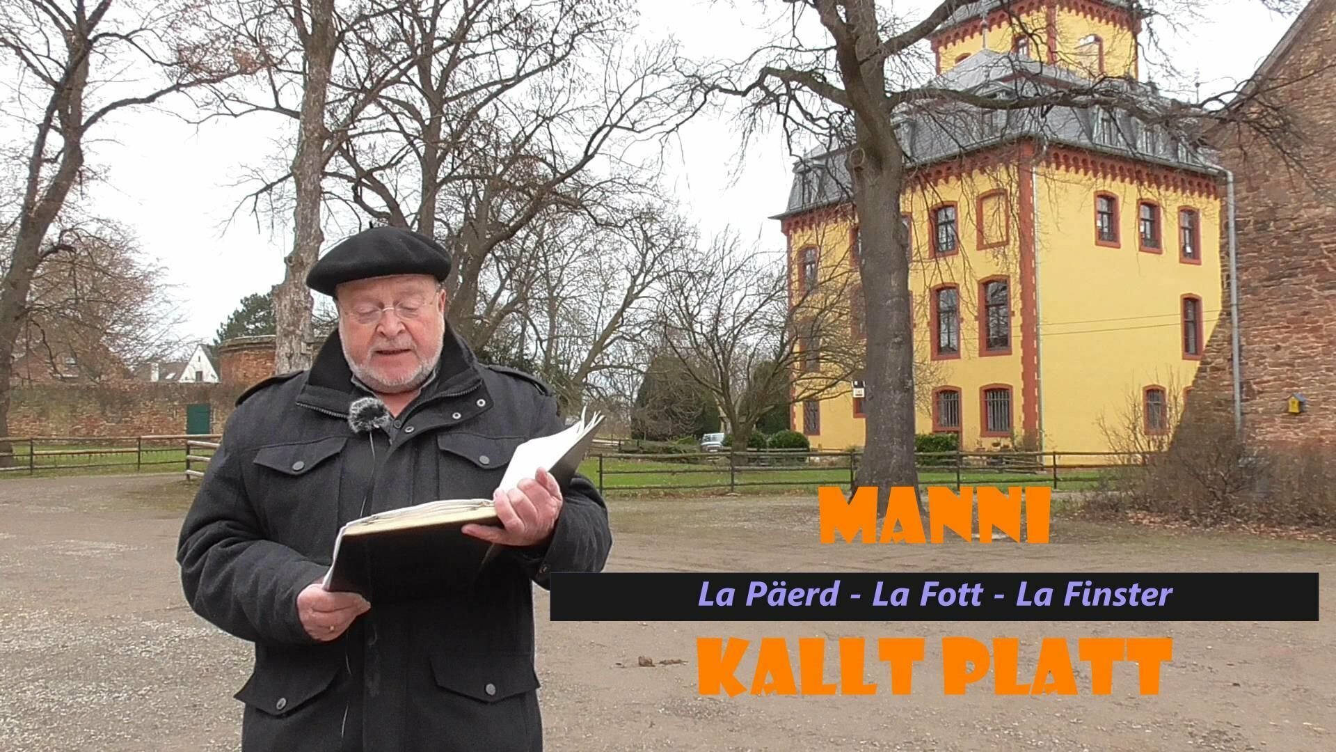 Die herbeigerufene Gendarmerie fragt nach den Ursachen des Malheurs. Worauf der Kutscher auf Kölsch-Französisch zu Protokoll gibt, wie sein Gaul ("la Päerd") mit seiner Kruppe (Hinterteil, "la Fott") durch die Glasscheibe geriet ("la finste"). Hätte der Filou wenigstens die Substantive auf Französisch gekannt, hätte er "dämm Schandarm" gesagt: "Le Cheval, le derrière, la fenêtre".