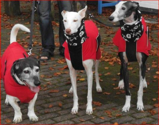 Auf den ersten Blick mutet es etwas schräg, ja sonderbar an, wenn Brunhild Perkampus mit ihren »Langnasen« unterwegsw sind. Maßangefertigte Mäntel tragen die Windhunde - gefertigt von der Hundefreundin aus Höfen.