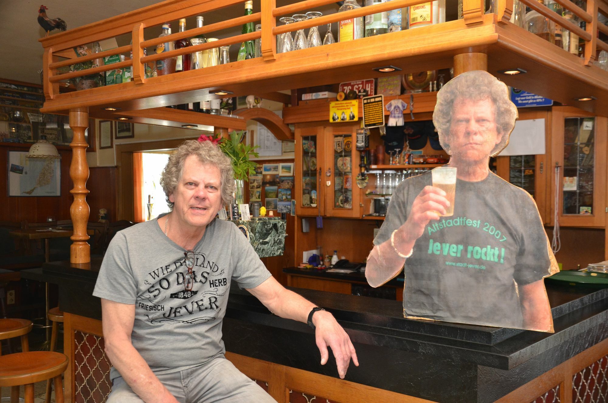 Der doppelte »Schang«: Wenn der »Wirt aus Leidenschaft« im nächsten Frühsommer die Gaststätte aufgibt, wird sein Pendant aus Pappe trotzdem zu spaßigen Touren nach Jever oder zum Eishockey nach Düsseldorf einladen. Foto: T. Förster