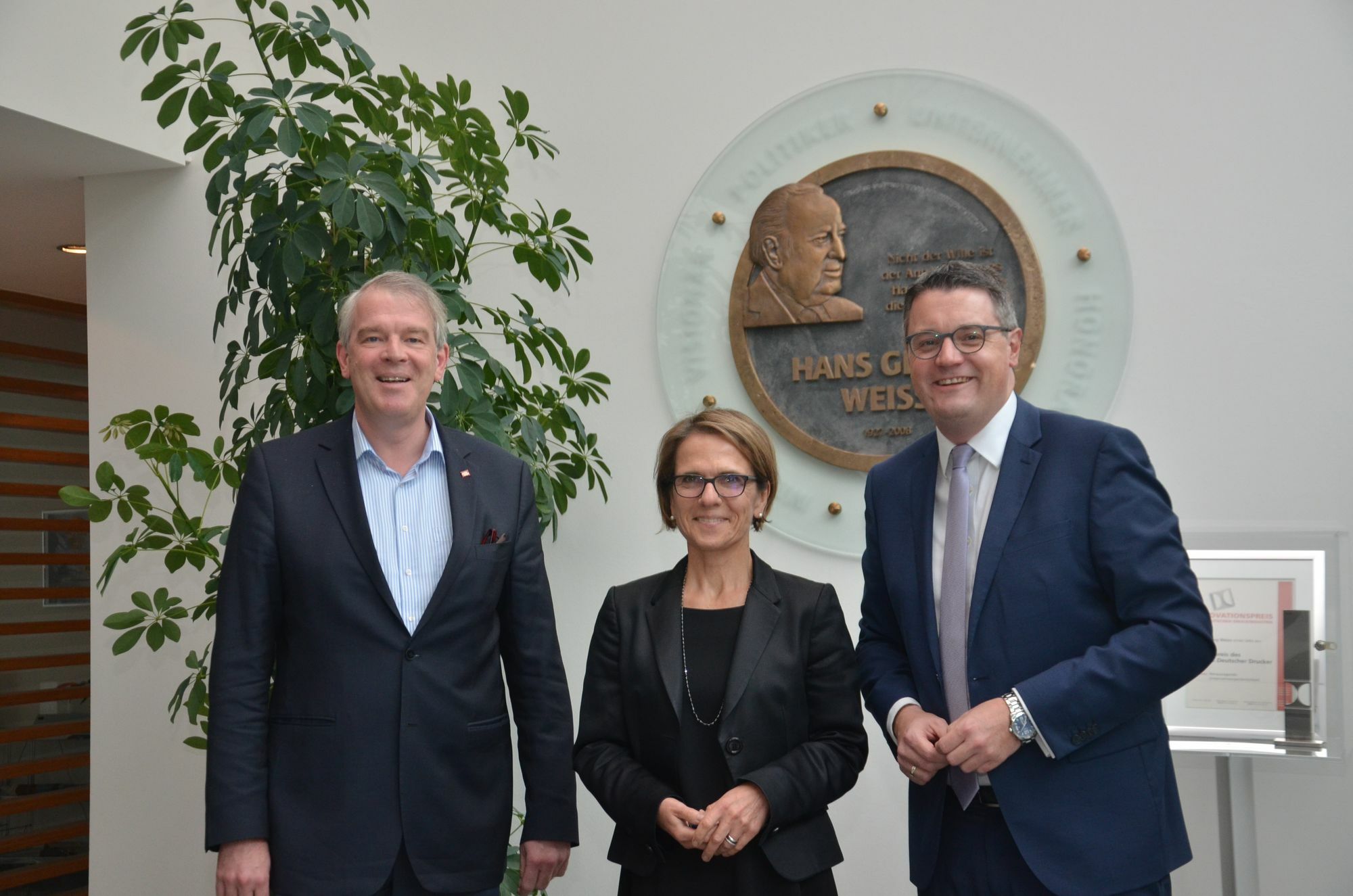 Den beiden Geschäftsführern im Medienhaus Weiss, Martina Schmitz und Alexander Lenders, sagte Grüttemeier zudem seine Unterstützung im Widerstand gegen den Atomreaktor Tihange 2 zu. »Tihange macht den Menschen in unserer Region Angst. Die Belgier sorgen sich hingegen um eine sichere Energieversorgung. Da muss es internationale Trassen geben, ehe wir eine Abschaltung der Atomkraftwerke einfordern können«, so Grüttemeier.