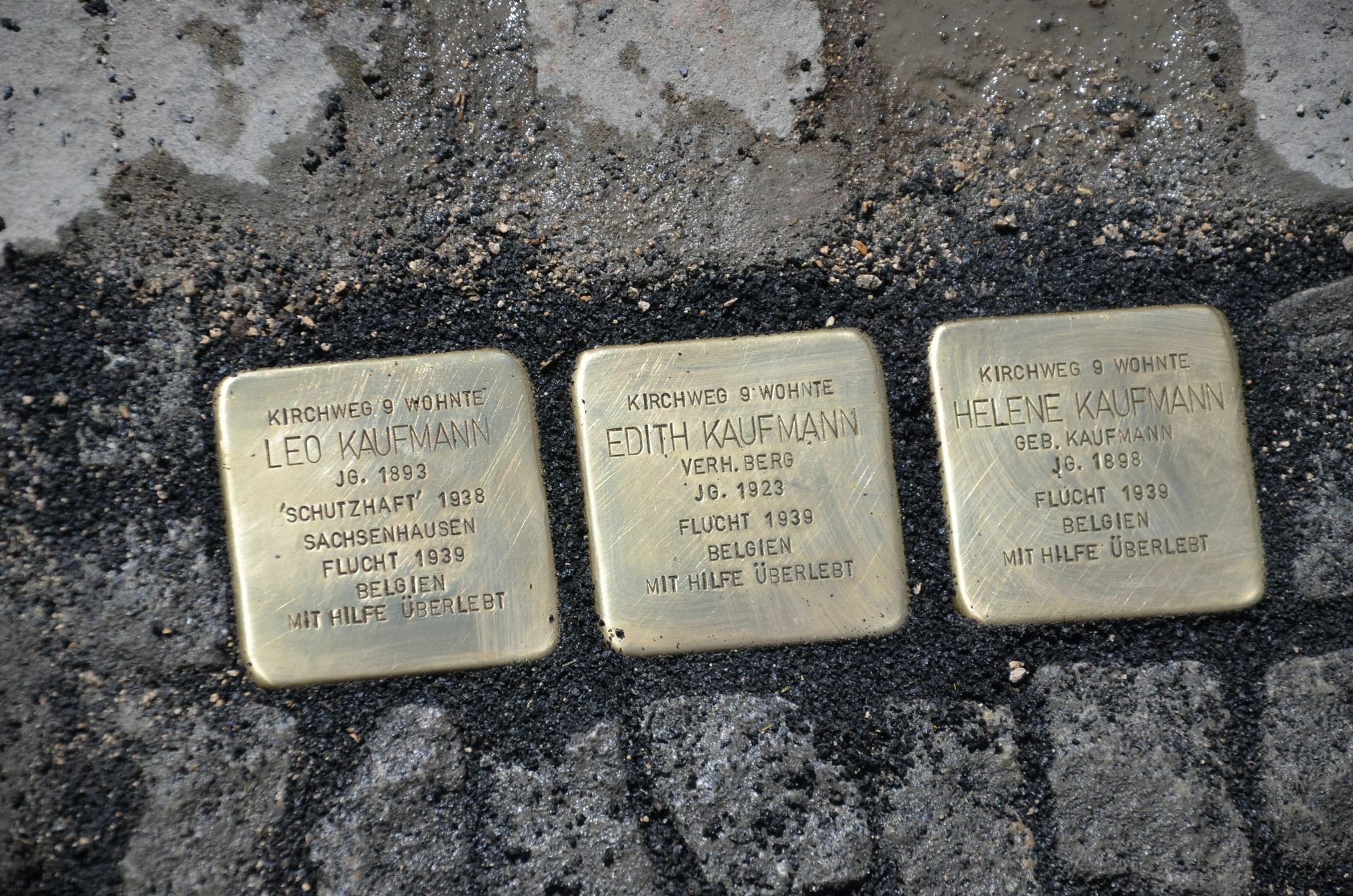 »Auch nach dem Krieg hatte er nicht vergessen, wer im Ort für die Gräuel mit verantwortlich gewesen war«, mutmaßt der Zeitzeuge. Kurze Zeit später emigrierte die Familie in die USA. »In Zeiten, wo Fremdenhass wieder an Popularität gewinnt, sind diese Stolpersteine ein ganz wichtiges Zeichen der Menschlichkeit«, unterstreicht Eicherscheids Ortsvorsteher Günter Scheidt. Auch er habe erst durch die Nachforschungen des Geschichtskreises vom Schicksal der Kaufmanns erfahren. »Ich danke den Eicherscheidern, dass sie den Mut bewiesen haben, diesem negativen Teil ihrer Geschichte einen Platz einzuräumen«, erklärte Bürgermeister Karl-Heinz Hermanns. »Schon in wenigen Jahren wird es keine Zeitzeugen mehr geben - aber diese Stolpersteine wirken nach.« Gezielt wurden sie zwar nahe dem ehemaligen Wohnhaus der Kaufmanns verlegt, aber doch auf dem Parkplatz der Pfarrkirche. »Dieses Mahnmal gehört auf einen öffentlichen Platz«, waren sich Ortsvorsteher Scheidt und die im Ortskartell zusammen geschlossenen Dorfvereine einig, die das Unterfangen finanzieren.