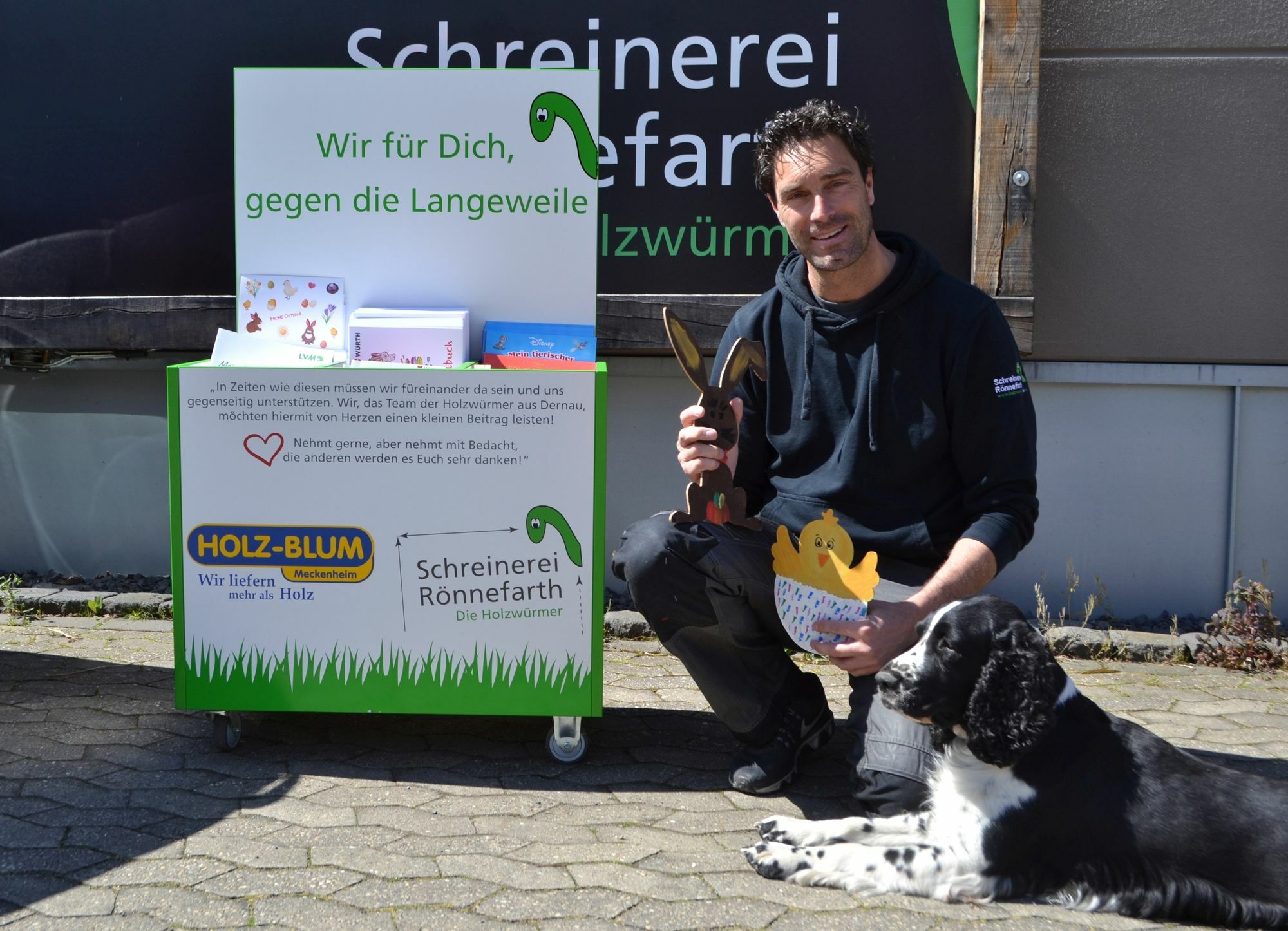 Geld möchten die Macher ausdrücklich keines bekommen. "Aber die Kinder haben viel extra für die 'Holzwürmer' gebastelt." Rund 7.500 Osterhasen aus Holz hat das Team der Schreinerei inzwischen ausgesägt. "Das war so nicht geplant", erklärt der Chef schmunzelnd. Anfangs funktionierte das noch neben dem laufenden Betrieb. Doch irgendwann mussten die Schreiner dann doch zwei Arbeitstage für die Aktion einlegen. Neben Holz Blum hat Rönnefarth inzwischen weitere Firmen ins Boot geholt. Die Ahrweiler Firma Jansen hat 300 Döschen Lack zum Bemalen der Hasen beigesteuert, die Firma Würth Stifte und Malbücher. Das Rheinbacher "Eiswerk" möchte Eisgutscheine spenden. "Und ich weiß, dass auch noch Malkästen kommen werden", verrät Rönnefarth. Weitere Unterstützer sind willkommen. Inzwischen haben andere Schreinereien das Konzept übernommen. "Ein Schreiner aus Bornheim rief mich an und fragte, ob er das ohne Veränderungen übernehmen kann. Das habt mich gefreut", berichtet Maik Rönnefarth, der das Konzept nun auch dem Fachverband Leben Raum Gestaltung Hessen/Rheinland-Pfalz überlassen hat.