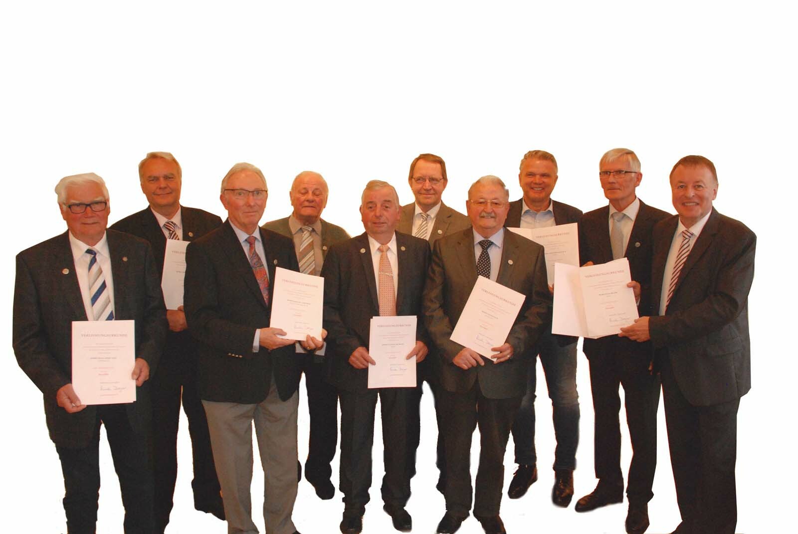„Dieses selbstlose und unbezahlte Engagement, das heißt bürgerschaftlich, also uneigennützig für die Gesellschaft, geschieht oftmals unbemerkt und bleibt häufig unentdeckt“, so der Landrat. Der Kreis nutzte die Chance die Geehrten in den Vordergrund zu rücken. Pföhler stellte jeden einzelnen vor und erklärte, in welchen ehrenamtlichen Bereich der Geehrte tätig war und verlieh dann die Ehrennadel des Landes im Namen der Ministerpräsidentin Malu Dreyer. Horst Engelstädter, Michael Geschier, Hans Meyer Ausgezeichnet wurde Horst Engelstädter aus Löhndorf, der schon seit 1976 im Vorstand des Imkervereins aktiv wurde und bis heute dort mitarbeitet. Michael Geschier, der seit einem halben Jahrhundert in der Hutengemeinschaft St. Katharina sich für die Pflege des Brauchtums und soziale Belange stark macht. Für sein Engagement im Sport wurde Hans Meyer ausgezeichnet, der seit drei Jahrzehnten Vorstandsmitglied beim TV Sinzig und Gründungsmitglied der LG Kreis Ahrweiler ist. Klemens Milbradt und Erwin Ritterrath Im Bereich Fußball aktiv sind Klemens Milbradt und Erwin Ritterrath. Sie gehören zum SV Rheinland Westum – Klemens Milbradt dabei schon seit 1955. Er arbeitet im Vorstand mit und unterstützt den Verein als Platzwart. Erwim Ritterrath ist Jugendleiter des SG Westum/Löhndorf und arbeitet aktiv im Männergesangverein Eintracht 1877 Westum mit. Edgar Rausch Aus Adenau wurde Edgar Rausch von der KG Rot-Weiß Adenau ausgezeichnet. Doch nicht nur für seine langjährige Mitarbeit als Vorsitzender der Karnevalisten sondern auch als Initiator der Hilfsaktion „Die Kinder von Tschernobyl“. Dabei wurden Hilfsgüter direkt zu strahlenkranken Kindern nach Minsk gebracht. Rausch selber übernahm dabei die Fahrt nach Weissrussland. Anton Palm, Thomas Schaaf und Hans-Josef Zipp Zu guter Letzt wurden Anton Palm, Thomas Schaaf und Hans-Josef Zipp ausgezeichnet für ihr kommunalpolitisches Engagement. Anton Palm ist seit 18 Jahren Ortsvorsteher von Ringen, Thomas Schaaf arbeitete zehn Jahre lang als stellvertretender Ortsvorsteher von Lantershofen und war 36 Jahre im Planungs- und Bauausschuss der Gemeinde Grafschaft tätig und Hans-Josef Zipp war von 1989 bis 1994 Beigeordneter und danach bis 2016 Ortsbürgermeister von Königsfeld. Landrat Pföhler betonte, dass das Engagement für die Ehrenamtler nicht immer nur einfach sei und man oft auch Enttäuschung und Undank aushalten müsse. „Deshalb wollen wir diejenigen auszeichnen, die durchhalten“, so Pföhler. Dabei richte sich der Dank auch an die Familien, die die Arbeit über Jahre unterstützt hatten. Neun Auszeichnungen Mit der Ehrennadel des Landes Rheinland-Pfalz wurden von Landrat Dr. Jürgen Pföhler ausgezeichnet: Klemens Milbradt und Erwin Ritterrath aus Westum, Horst Engelstädter aus Löhndorf sowie Hans Meyer aus Sinzig, Anton Palm aus Ringen und Thomas Schaaf aus Lantershofen sowie Hans-Josef Zipp aus Königsfeld, Michael Geschier aus Bad Neuenahr-Ahrweiler und Edgar Rausch aus Adenau.