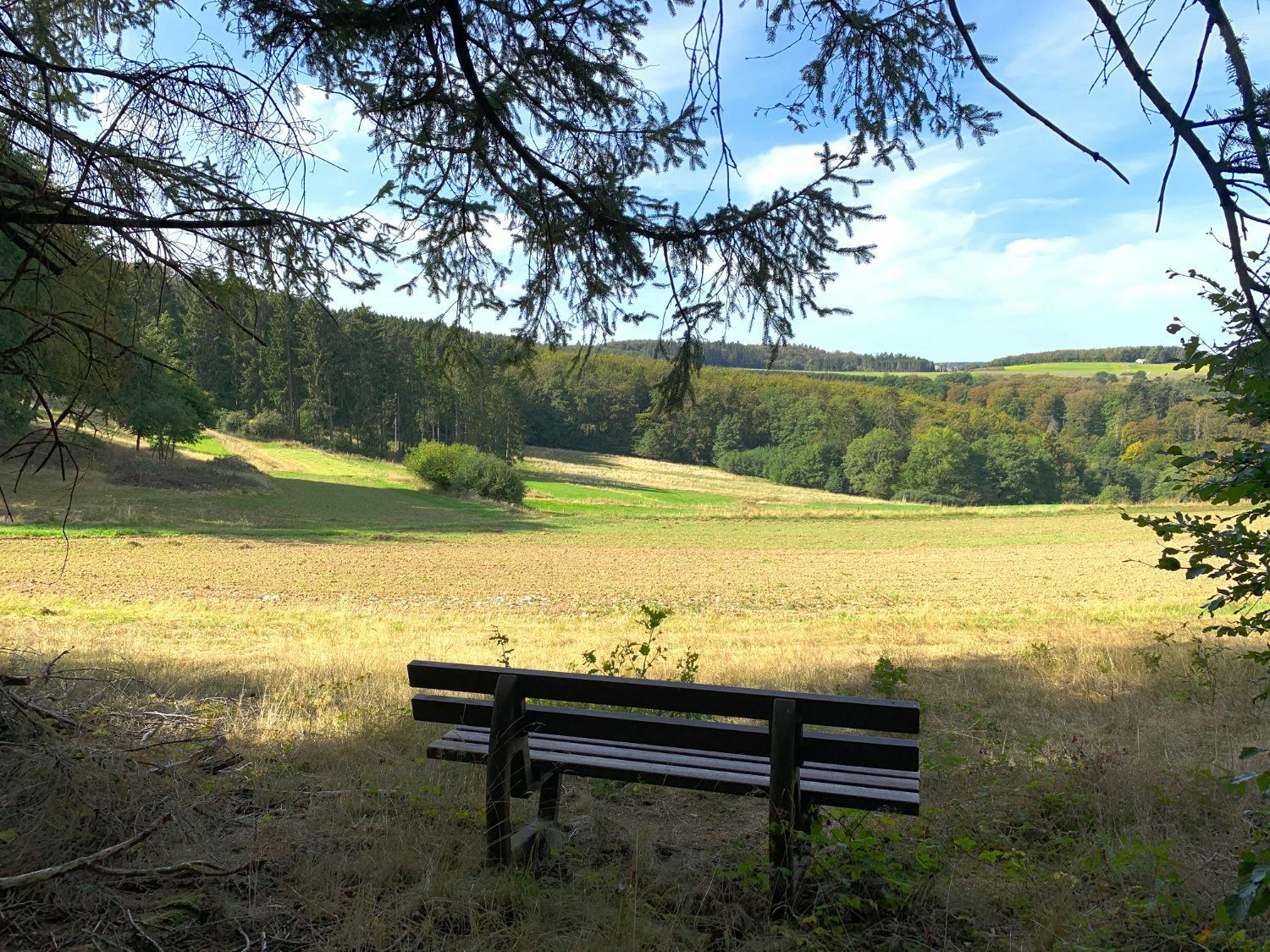 Oben lädt eine Bank genau an der richtigen Stelle zu einer Rast. Anschließend gehen wir zum schattigen Arbach hinunter und können uns an dessen Tal und einigen schön gelegenen Bänken erfreuen. Wir wechseln die Talseite, laufen noch ein Stück auf herrlichem Grasweg weiter taleinwärts, und nun wartet noch ein letzter Anstieg auf die Höhe von Salcherath. Oben werden wir mit einem herrlichen Rundumblick belohnt und erleben dann noch einen beglückenden Abschluss: Durch eine wunderschöne Wiesenlandschaft steigen wir ab und können zuletzt bis Retterath das idyllische Elzbachtal genießen.