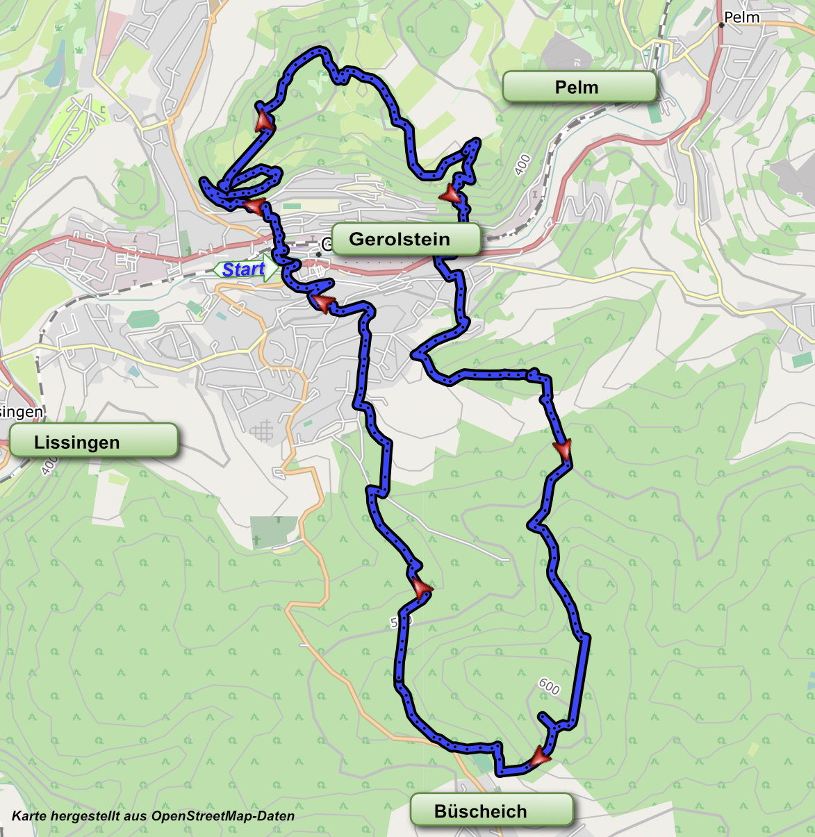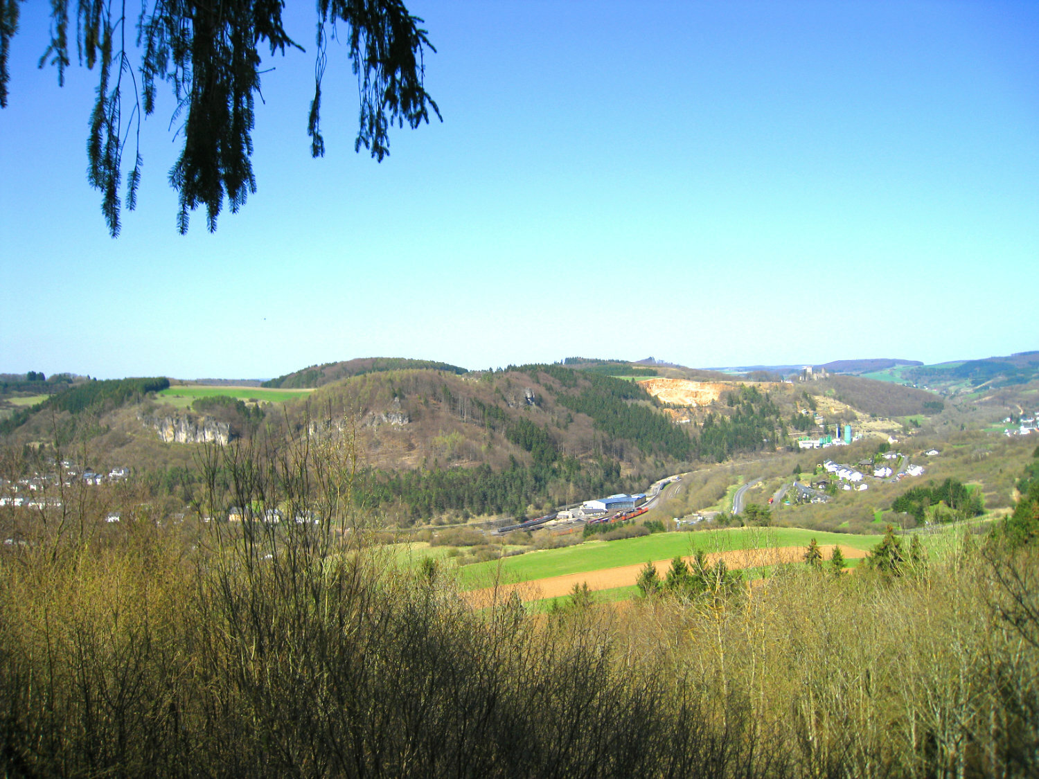 Idyllische Pfade bringen uns zunächst durch das eindrucksvolle Naturschutzgebiet der Dolomitfelsen hinauf zur Munterley, einem Felsvorsprung mit wunderbarer Sicht über die Stadt und das Kylltal. Von dort wandern wir zur Buchenlochhöhle, die aufgrund ihrer Ausmaße bereits vor 300.000 Jahren Menschen als Zufluchtsstätte diente. Der weitere Weg führt vorbei an der Papenkaule, dem Trockenkrater eines Vulkans, der mit seiner ansehnlichen Größe von 80 m Durchmesser und 20 m Tiefe beeindruckt. Anschließend können wir noch einige Male von schön gelegenen Aussichtspunkten die unter uns liegende Stadt und die sie umgebende Landschaft betrachten, bevor wir schließlich auf steilem Pfad hinunter nach Gerolstein kommen. Sobald wir dort die Talsohle erreicht und die Hauptverkehrsstraße gequert haben, steigen wir erneut kontinuierlich aufwärts, und bald nähern wir uns der Schutzhütte auf dem Heiligenstein, von wo aus man in nördliche Richtung auf Gerolstein, die Dolomitfelsen und die Kasselburg schauen kann. Im weiteren Tourenverlauf haben wir die Möglichkeit, ein im Wald liegendes, legendenumwobenes Wallfahrtskirchlein, die Büschkapelle, zu besuchen, die nur 200 m neben unserer Wanderstrecke liegt. Bald darauf erreichen wir den Höhepunkt auf dieser südlich von Gerolstein verlaufenden Teilstrecke: die Bergkuppe Dietzenley, mit 618 Höhenmetern die höchste Erhebung im Gerolsteiner Land. Von dem aus Holz gebauten Aussichtsturm genießt man eine grandiose Rundumsicht, und wenn die Witterung es zulässt, können Sie den schönen Ort zu einer ausgiebigen Rast nutzen. Wir schließen die Runde, indem wir nach dem Besuch der Dietzenley hinunter bis an den Rand des Dorfes Büscheich steigen und dann die letzten 3 km in nördlicher Richtung durch Wald vorbei an einem schönen Wegkreuz (Davitskreuz) und über einen Waldlehrpfad zurück nach Gerolstein wandern.